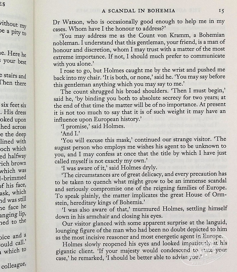 Having firmly established the characters of Sherlock Holmes and Dr Watson in the novels A Study in Scarlet and The Sign of the Four, Sir Arthur Conan Doyle was retained by The Strand Magazine to contribute a series of twelve short stories, which began with 'A Scandal in Bohemia' in 1891 and were published monthly for the next year. The stories, in which the master sleuth receives a stream of clients presenting him with baffling and bizarre mysteries in his consulting room at 221B Baker Street, were instantly popular and by the time of the publication of the final story, 'The Copper Beeches', they had become the mainstay of the magazine. They included such classic tales as 'The Five Orange Pips' and 'The Adventure of the Speckled Band', and were gathered together in a collection known as The Adventures of Sherlock Holmes, representing some of the finest detective stories ever written.