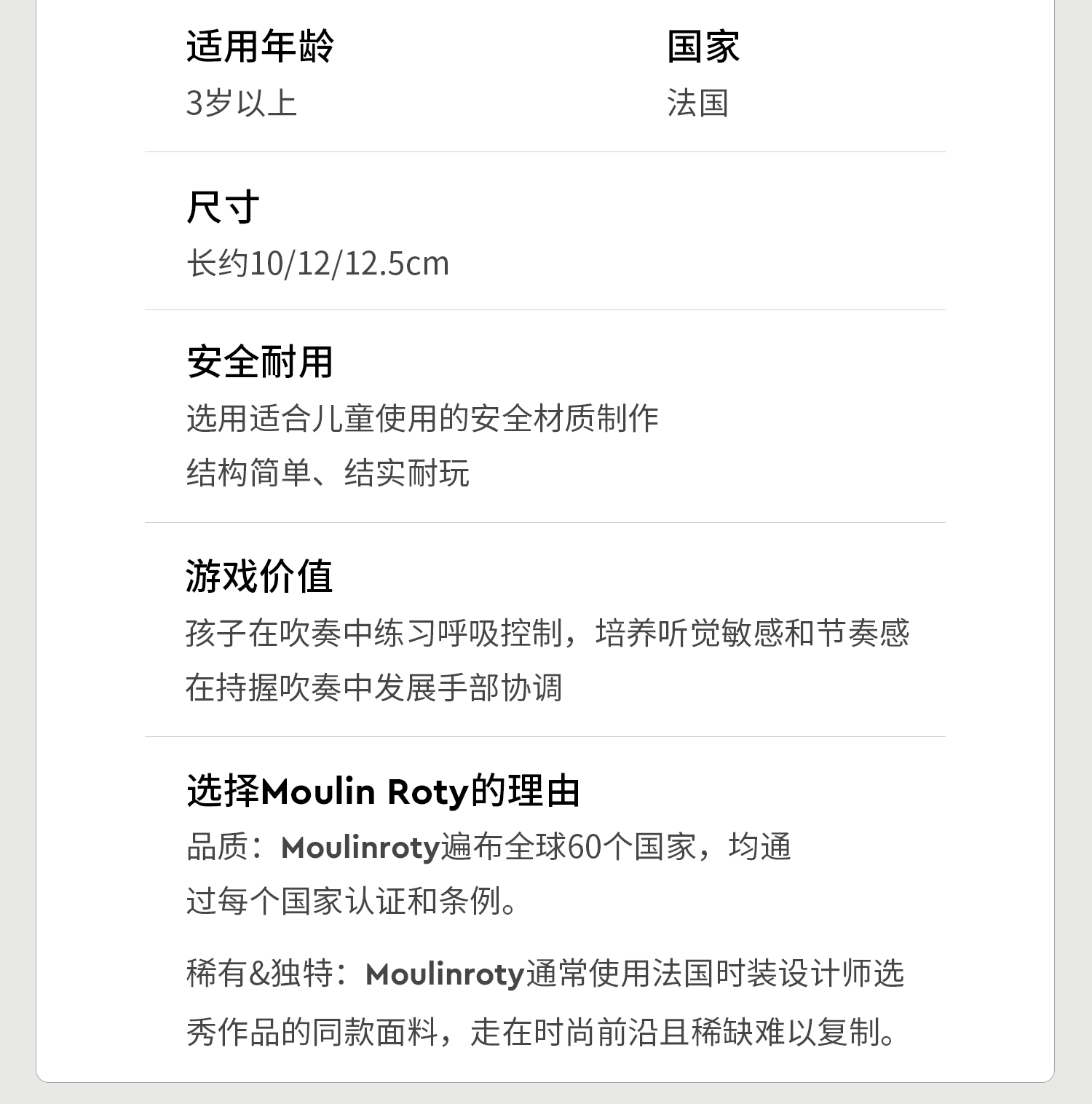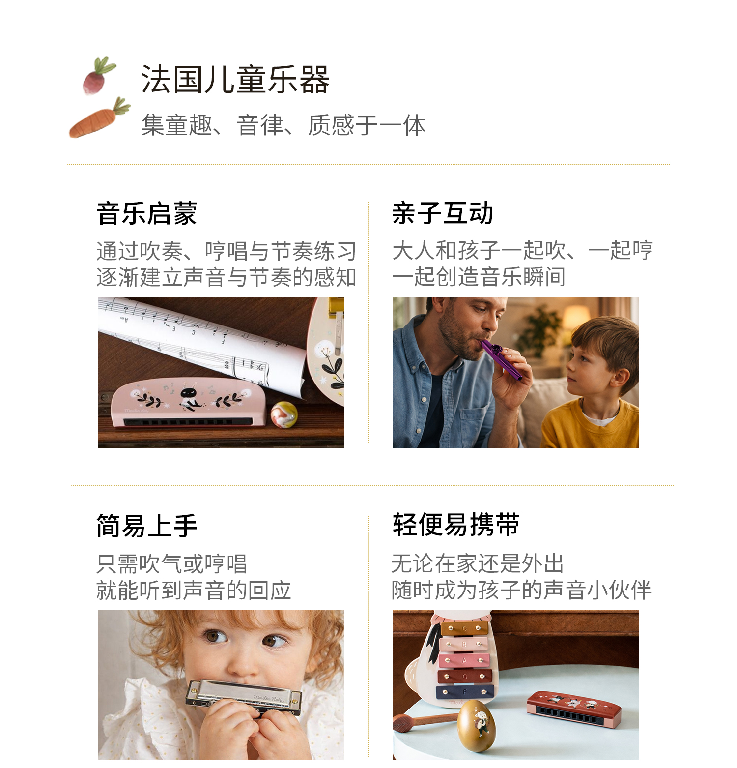 Moulin Roty 假日金属口琴/口风琴 适合3岁+ 音律启蒙 口腔肌肉锻炼 假日系列 法国品牌-713107