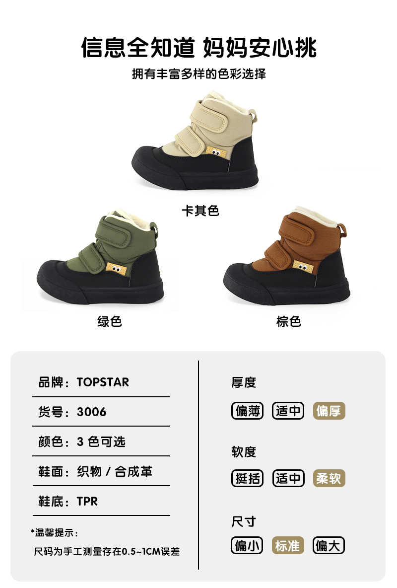 【品牌优选】TOPSTAR2024冬季新款软底儿童雪地靴3006