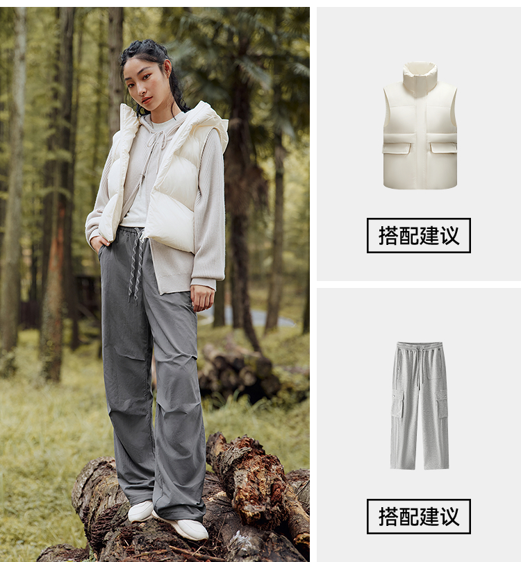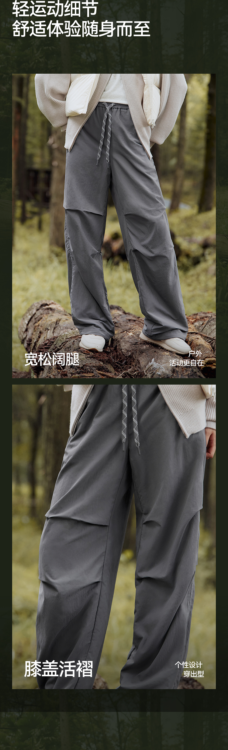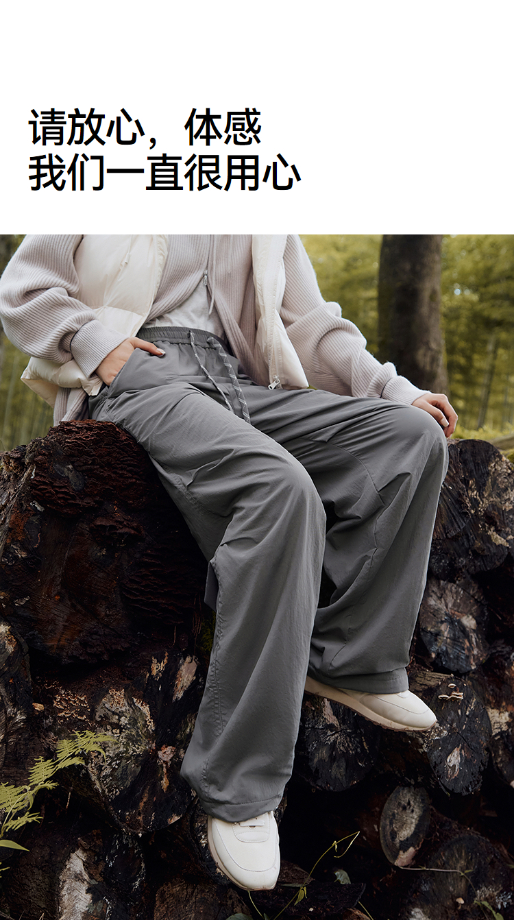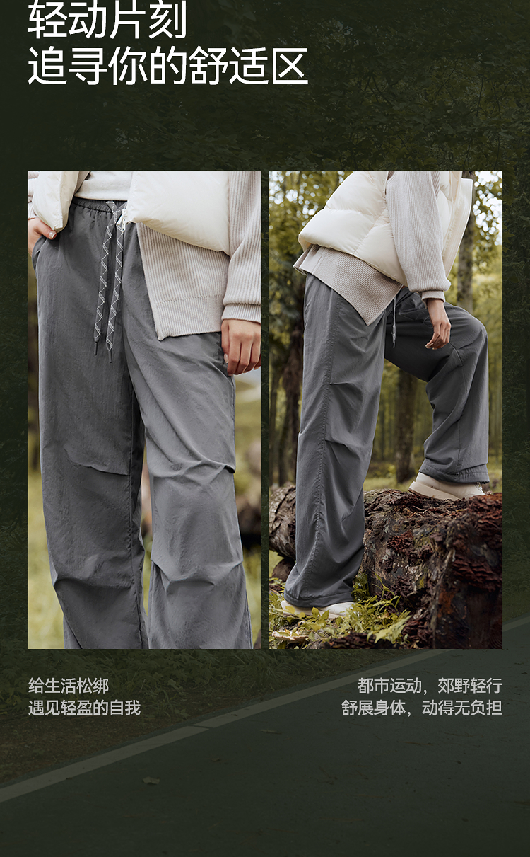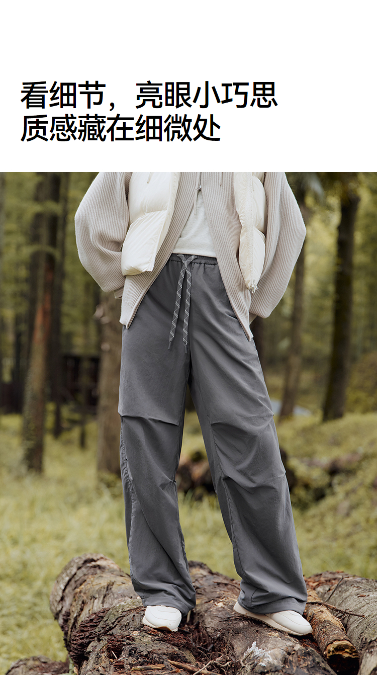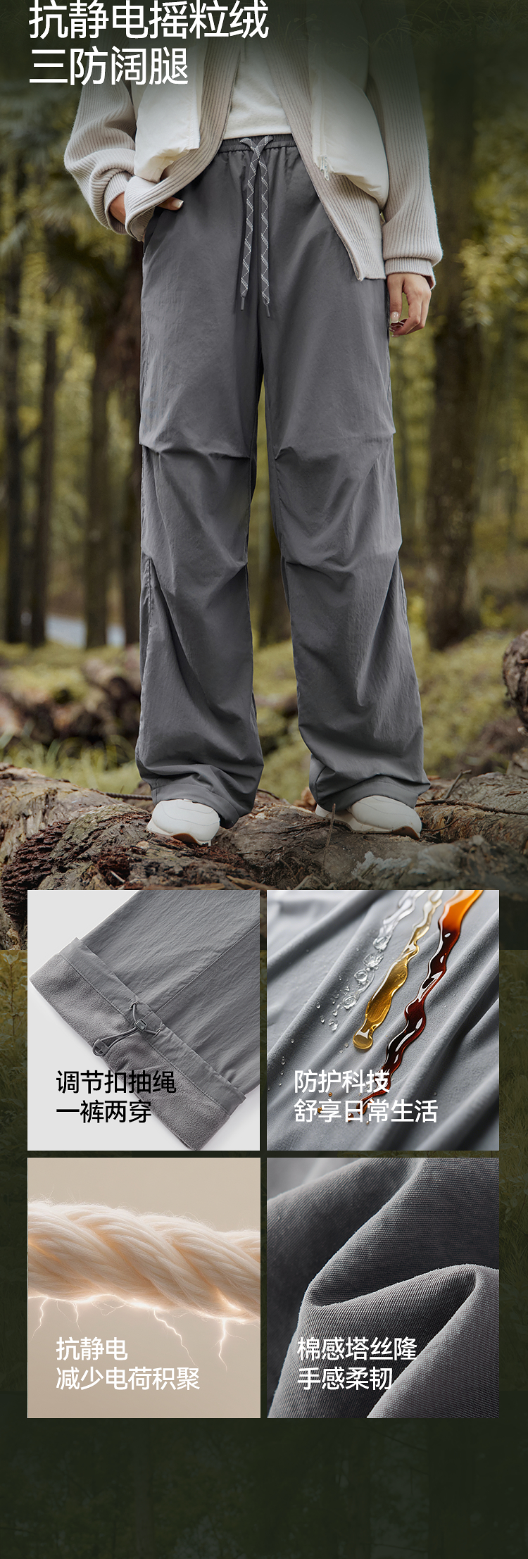 森马休闲裤女冬三防抗静电摇粒绒宽松抽绳阔腿裤2025新款户外长裤