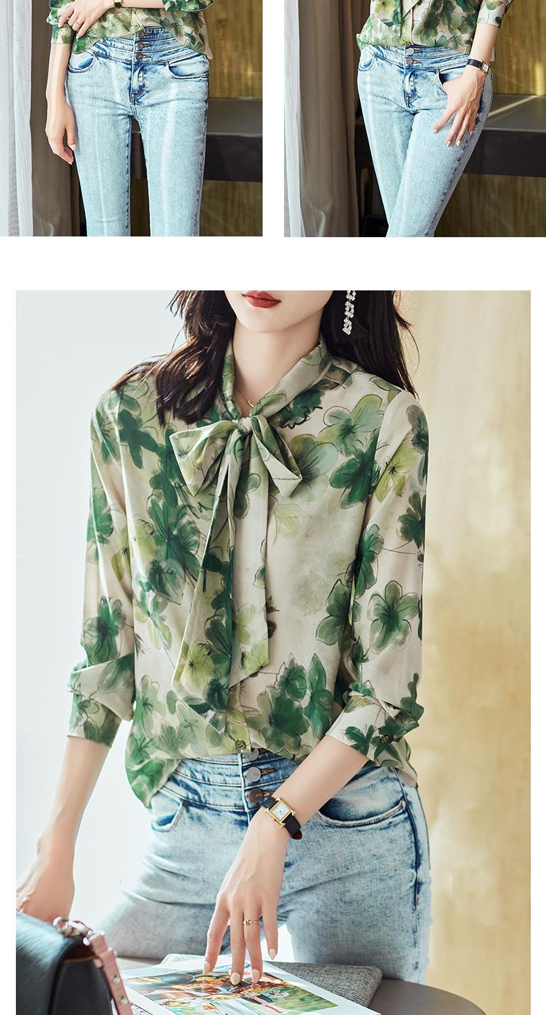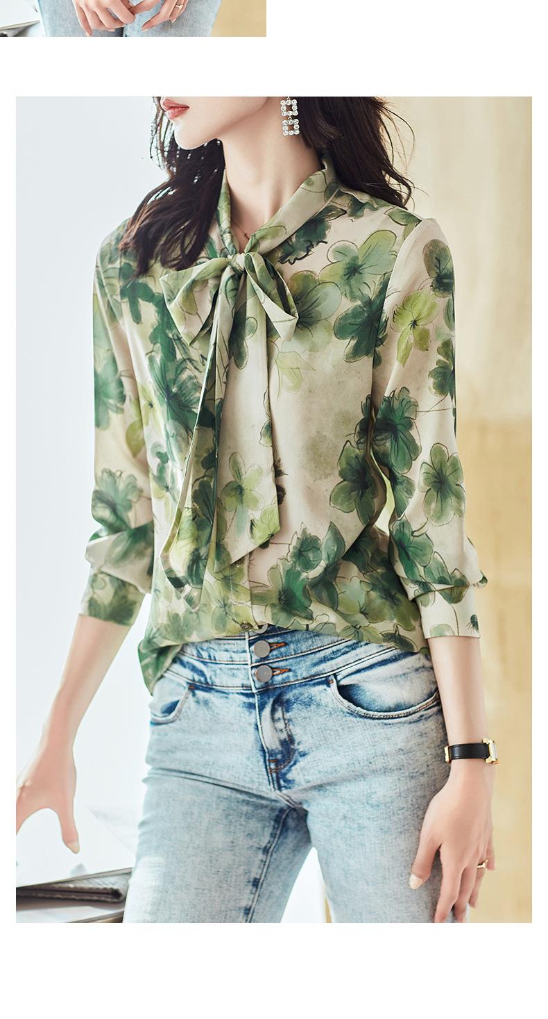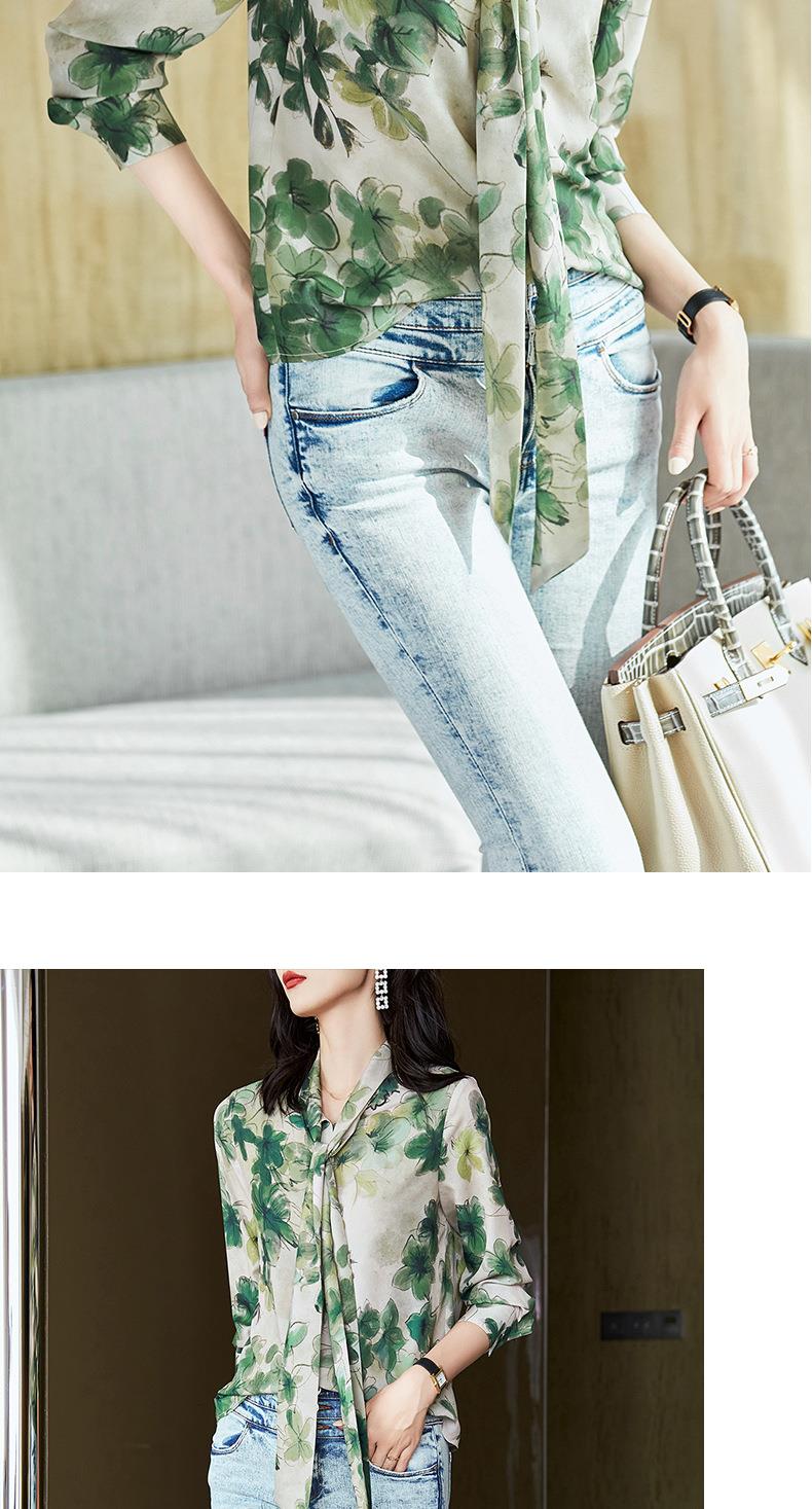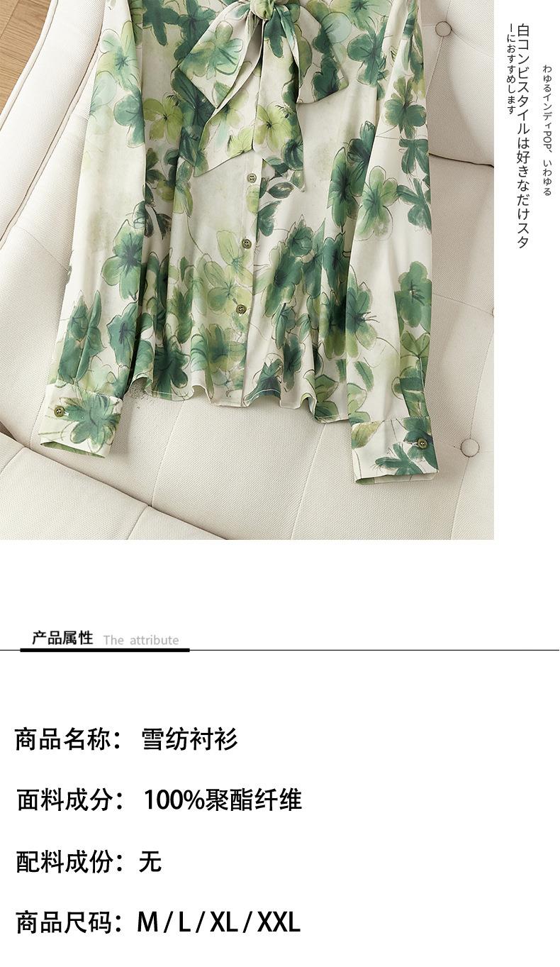 2023秋装新款衬衫女长袖宽松雪纺衫印花女士衬衣A2720