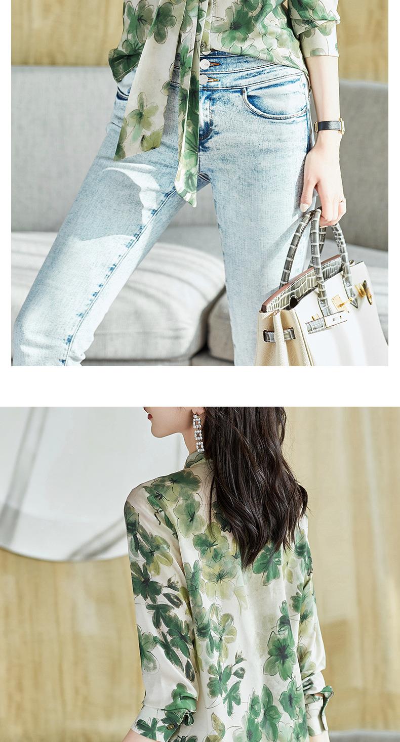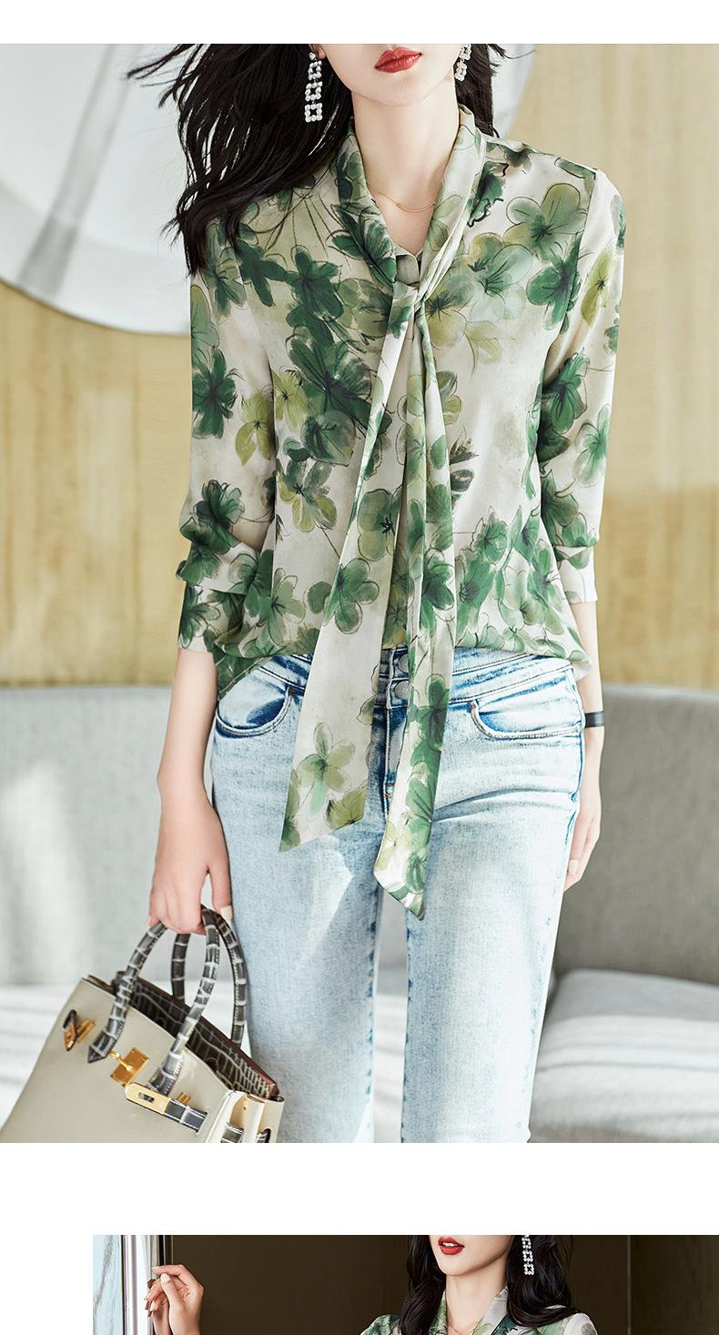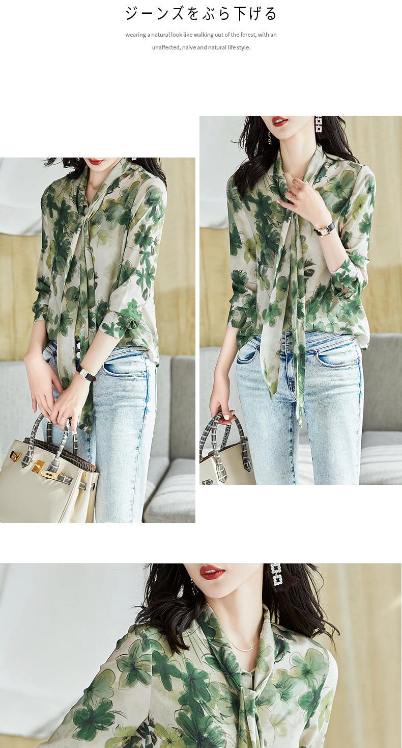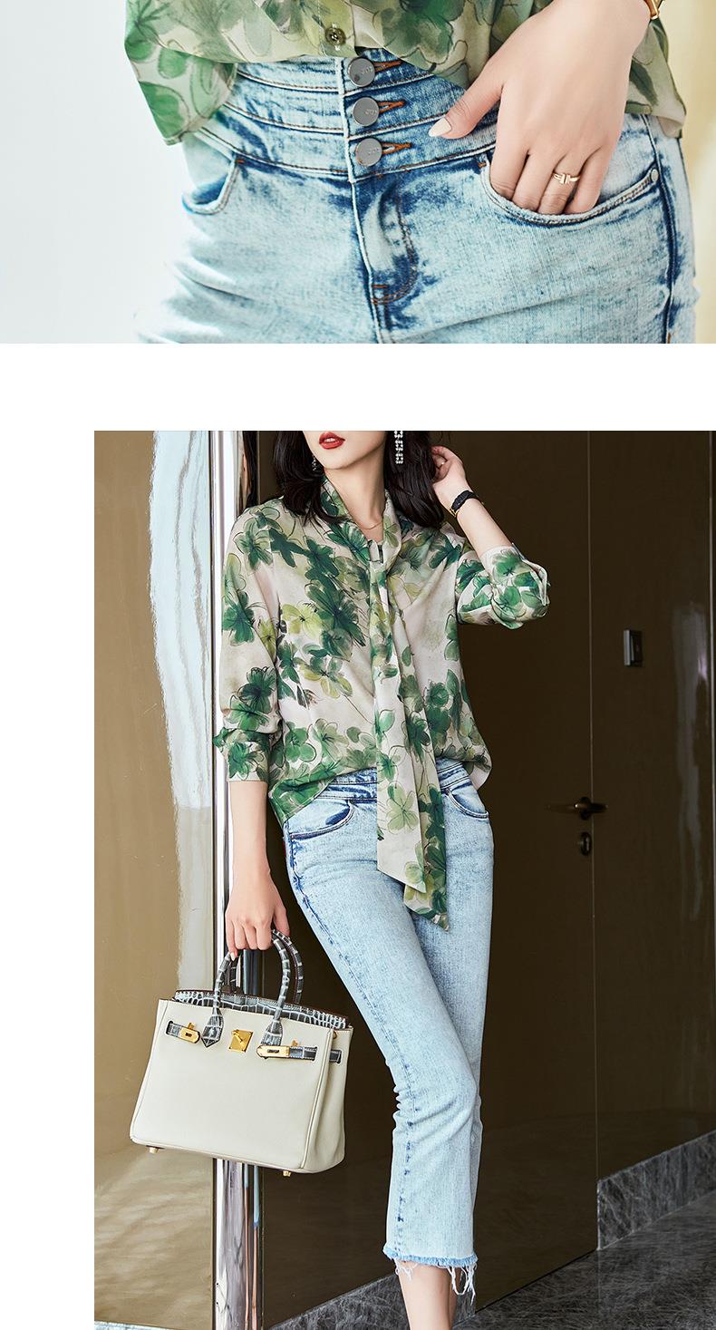 2023秋装新款衬衫女长袖宽松雪纺衫印花女士衬衣A2720