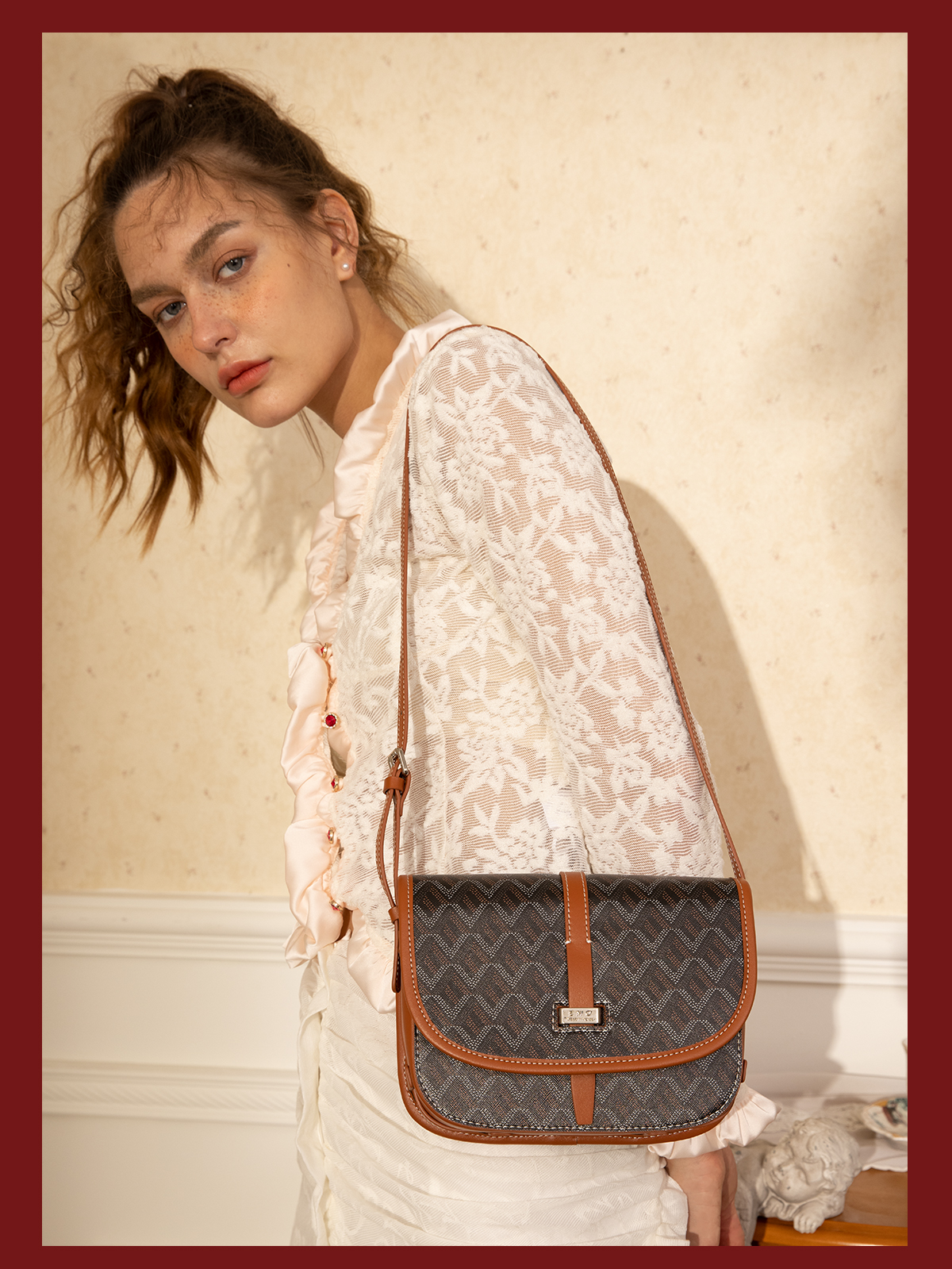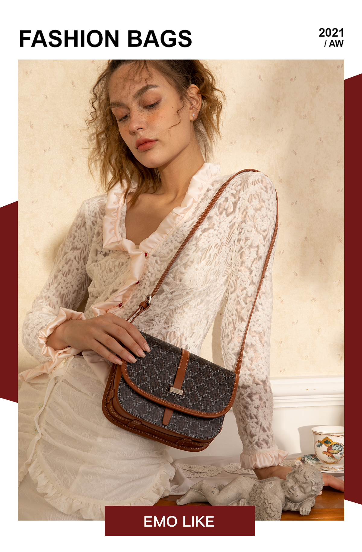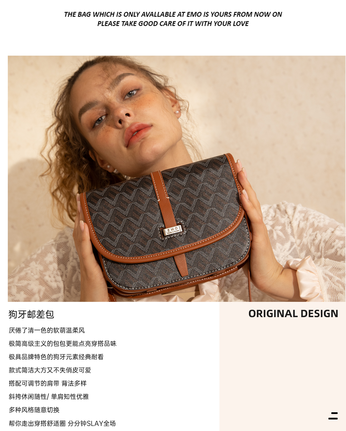 EMO狗牙邮差包包斜跨包包女新款复古大容量高级感单肩包