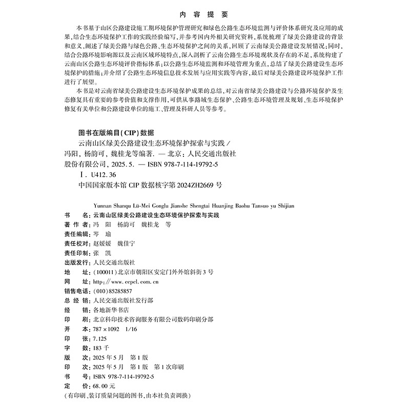书名:云南山区绿美公路建设生态环境保护探索与实践