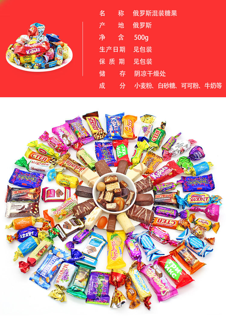 【爆款超低价预售 急单慎拍】俄罗斯混合糖果紫皮糖巧克力威化散装水果糖多种零食混装喜糖批发