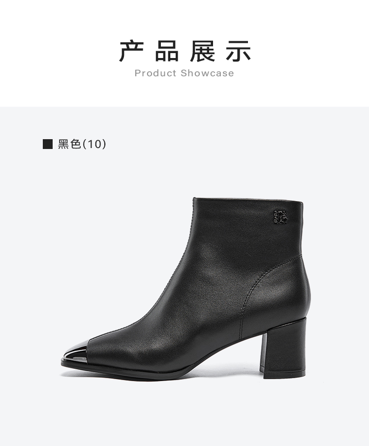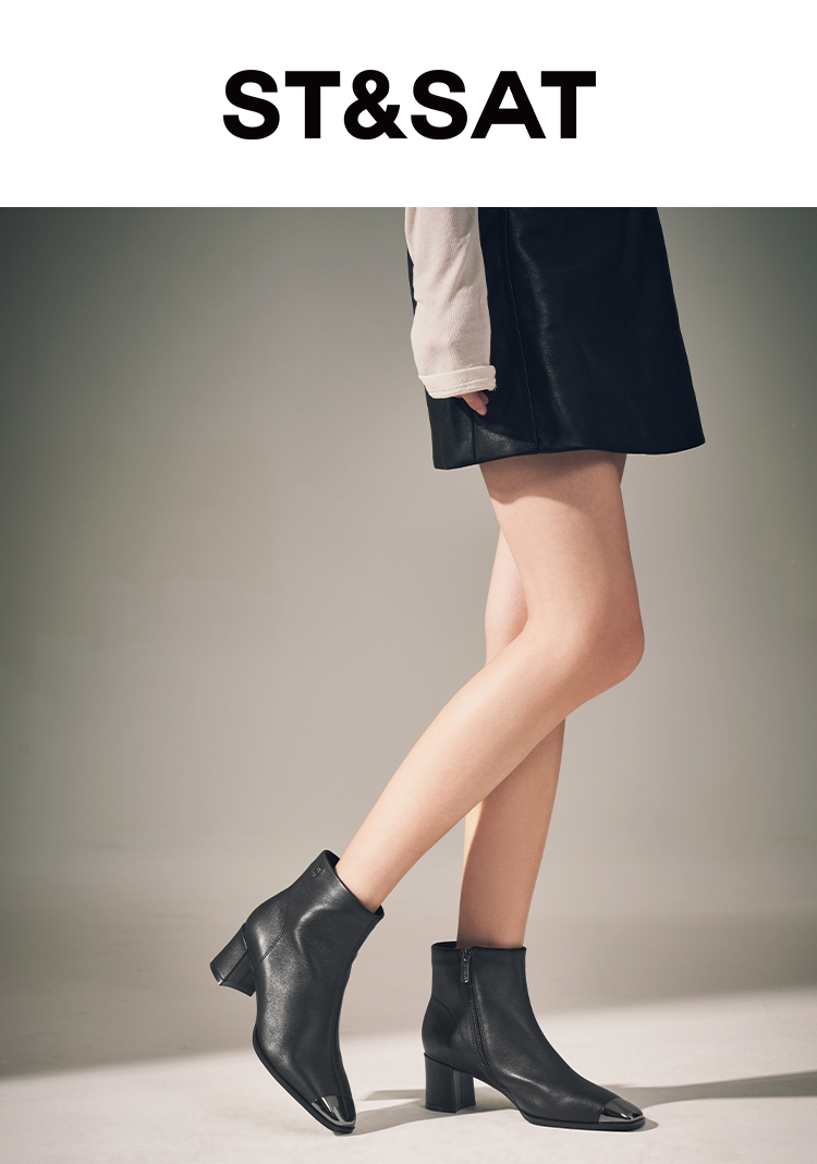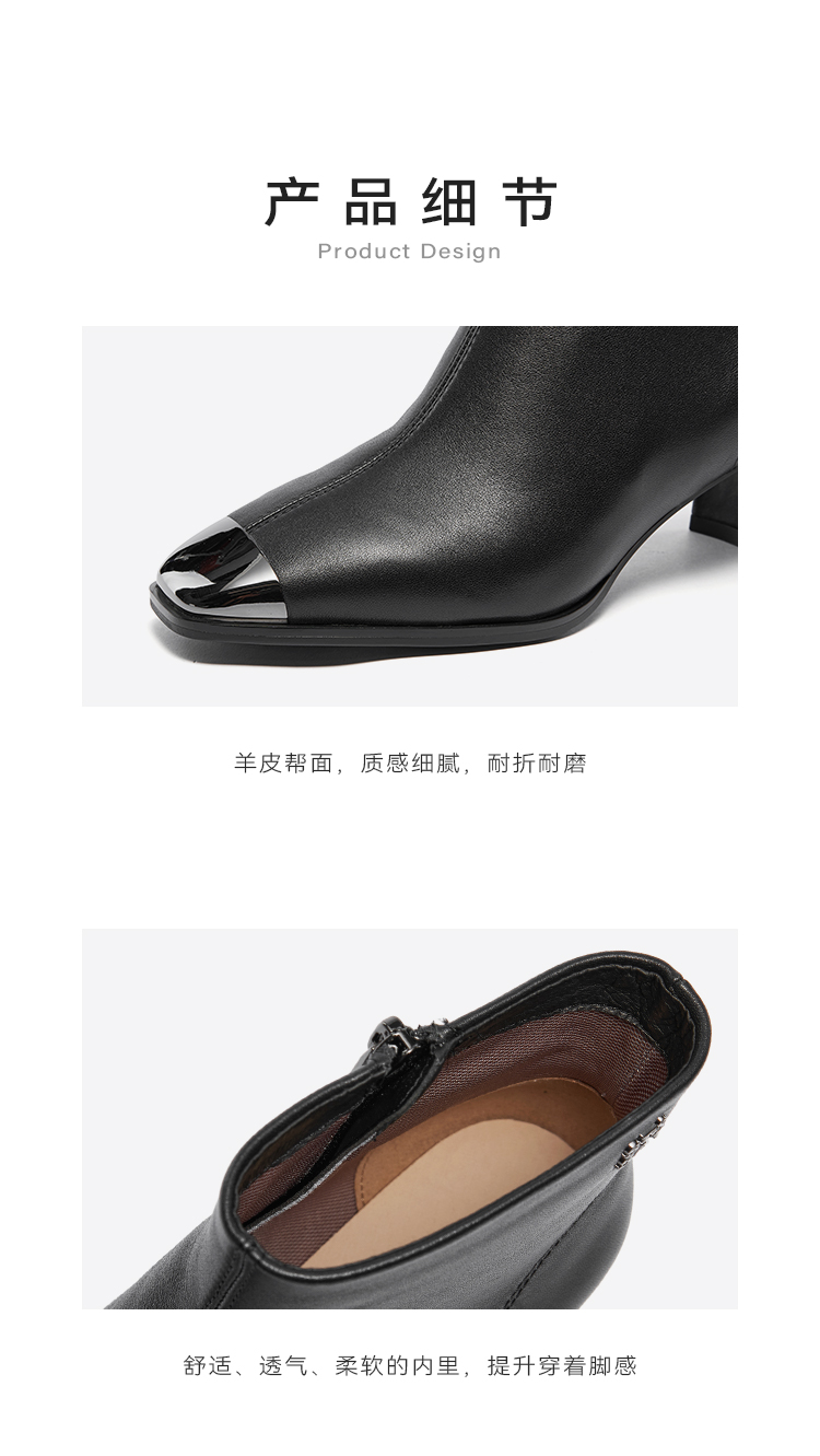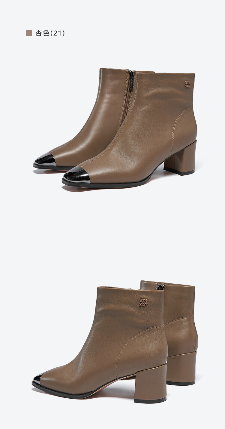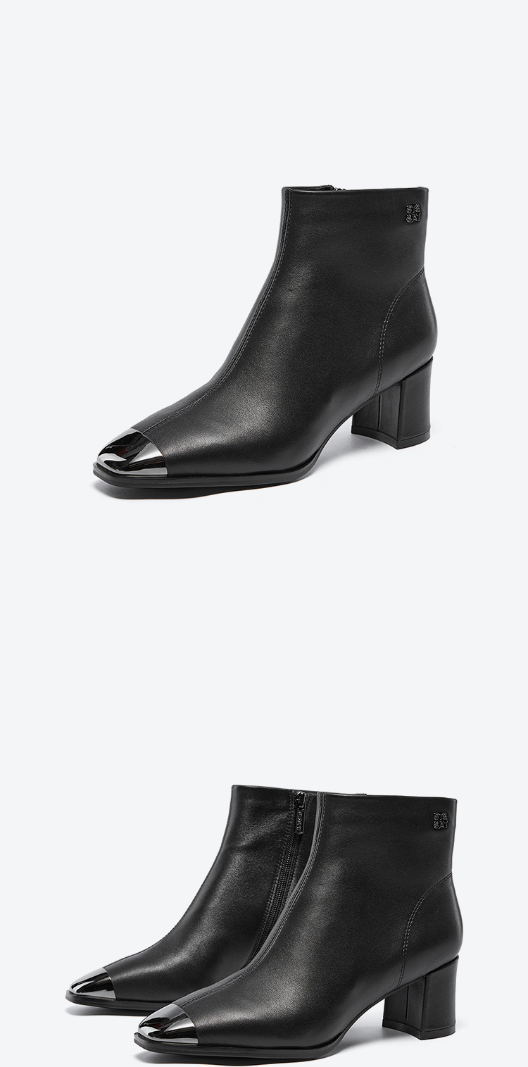 星期六极简金属方头粗跟羊皮短靴SSC4116361