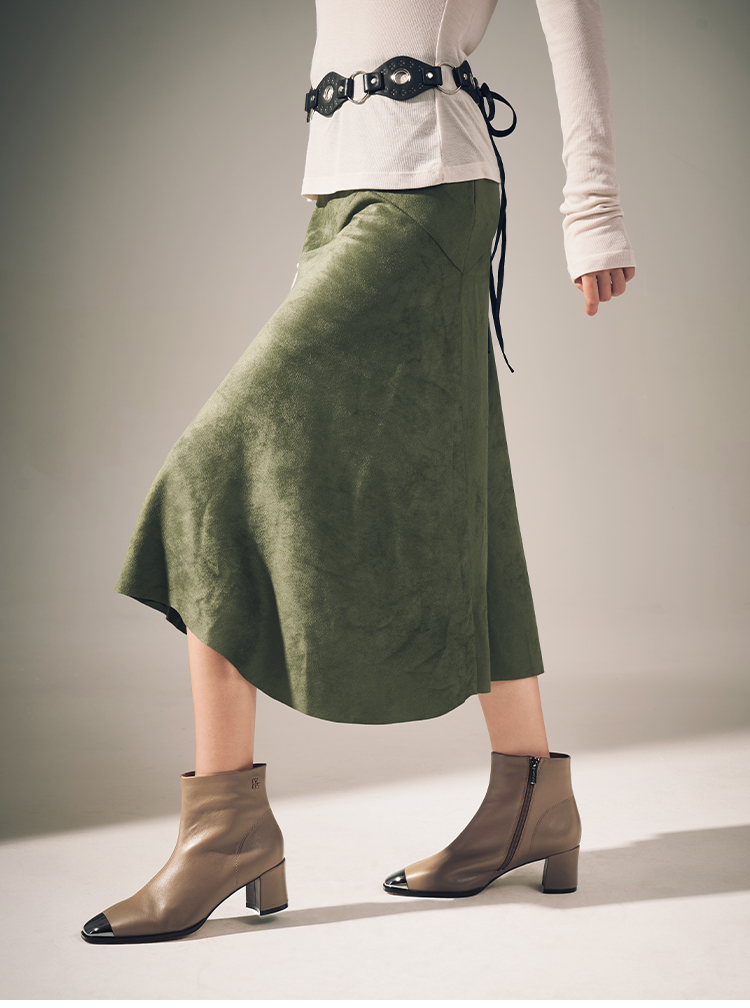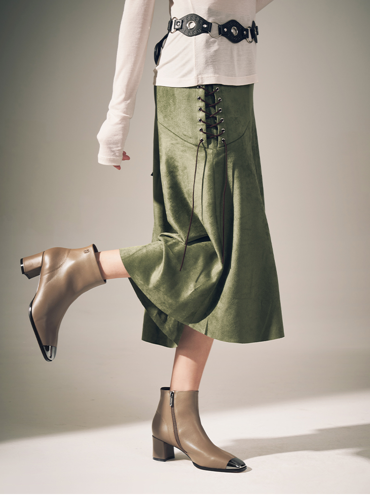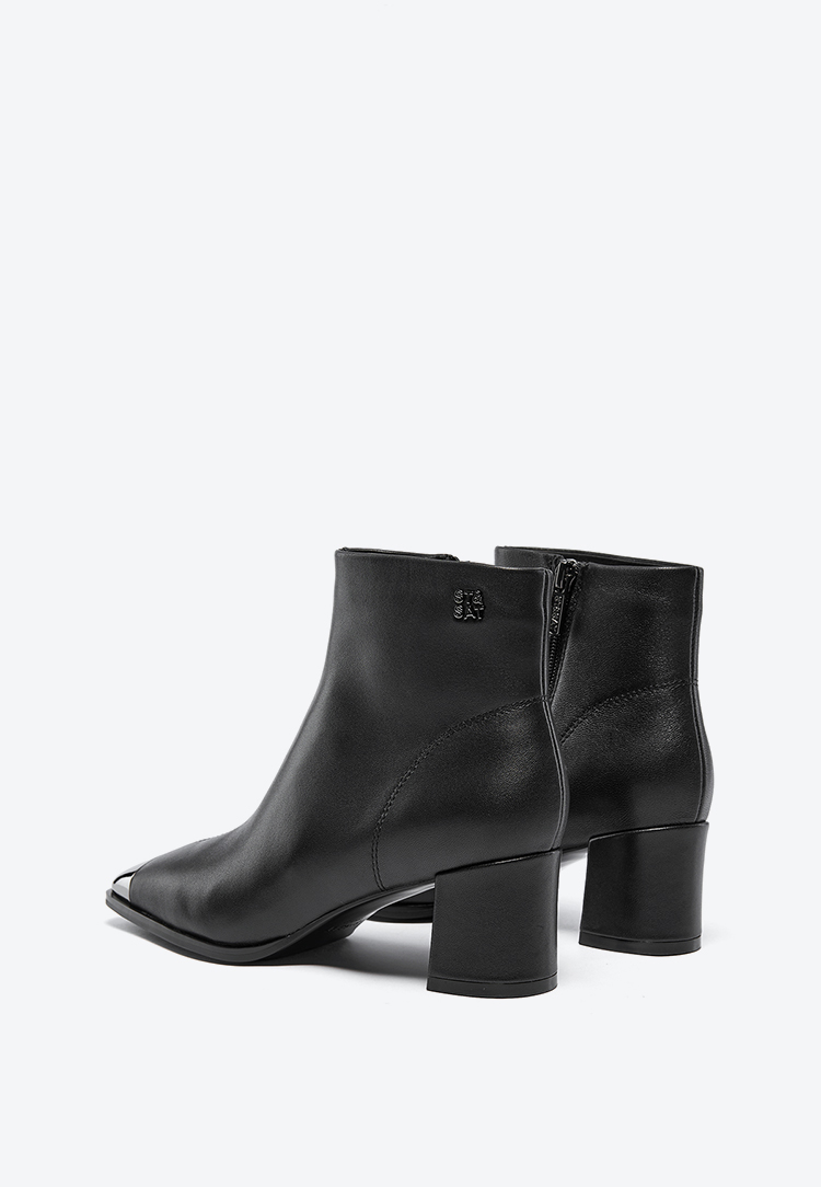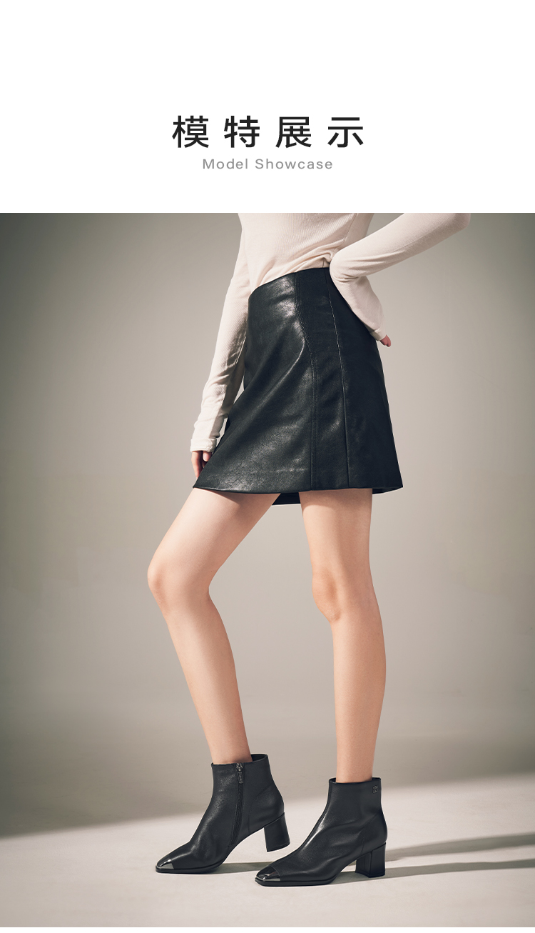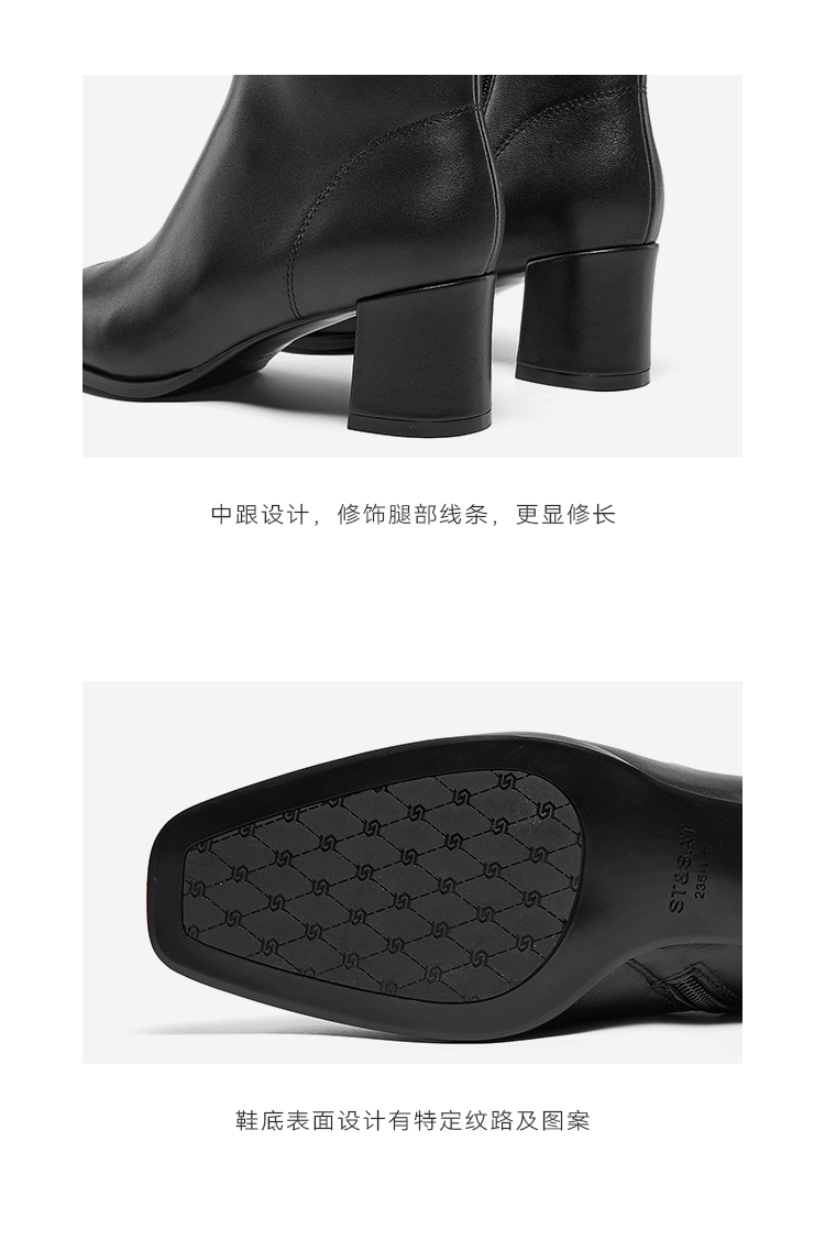 星期六极简金属方头粗跟羊皮短靴SSC4116361