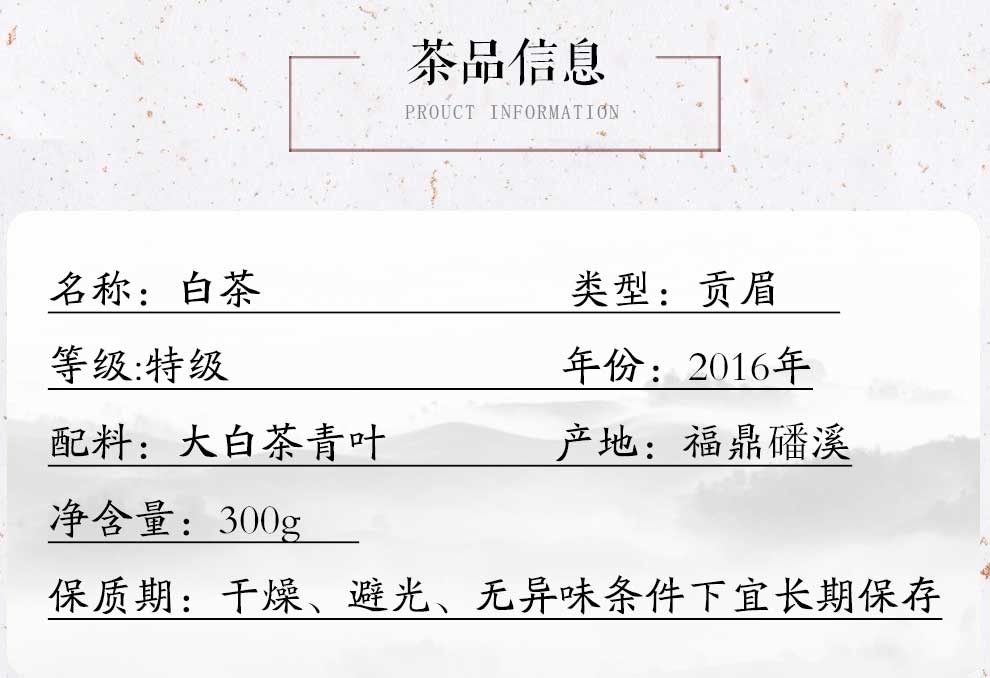 2016年贡眉 特级白茶饼 净重300克