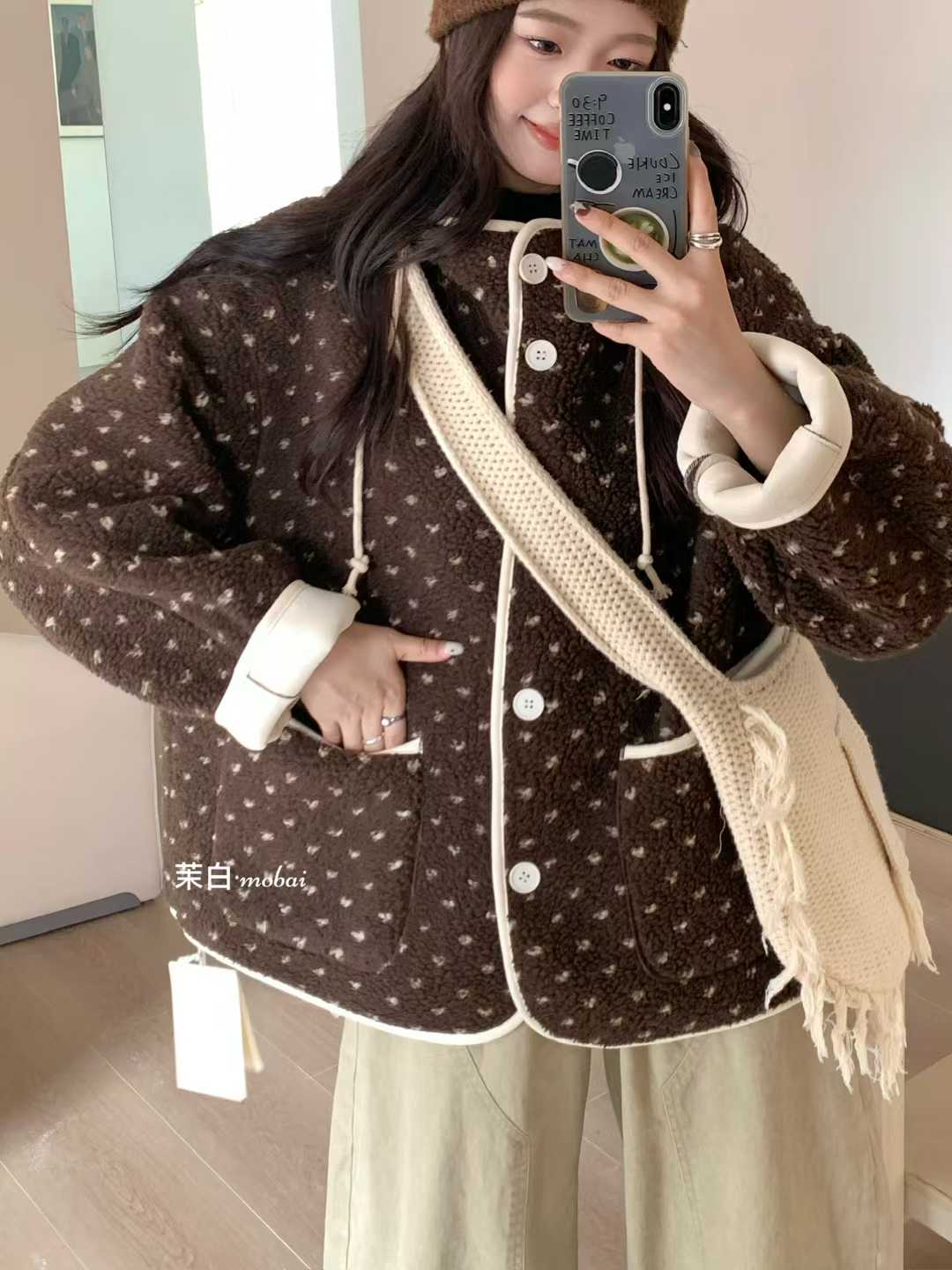 【GZ】无忧购 新款韩版爱心波点保暖羊羔毛棉衣外套255252#(截单后3-5天发货)