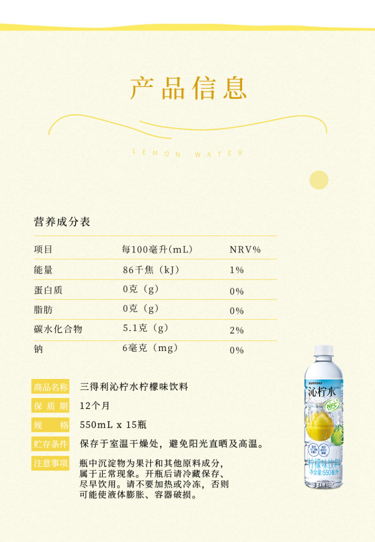 三得利 沁柠水 550ml*15瓶(包邮直发)