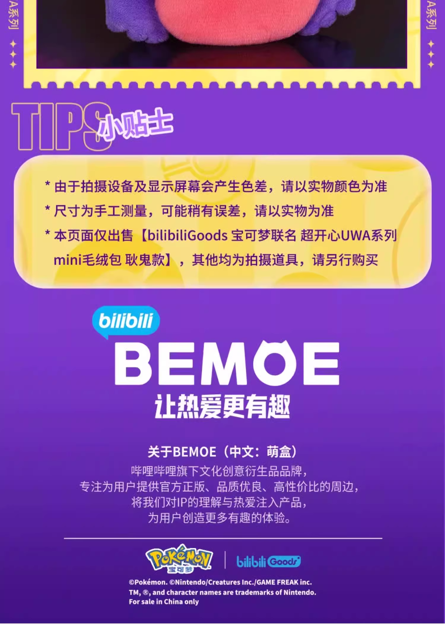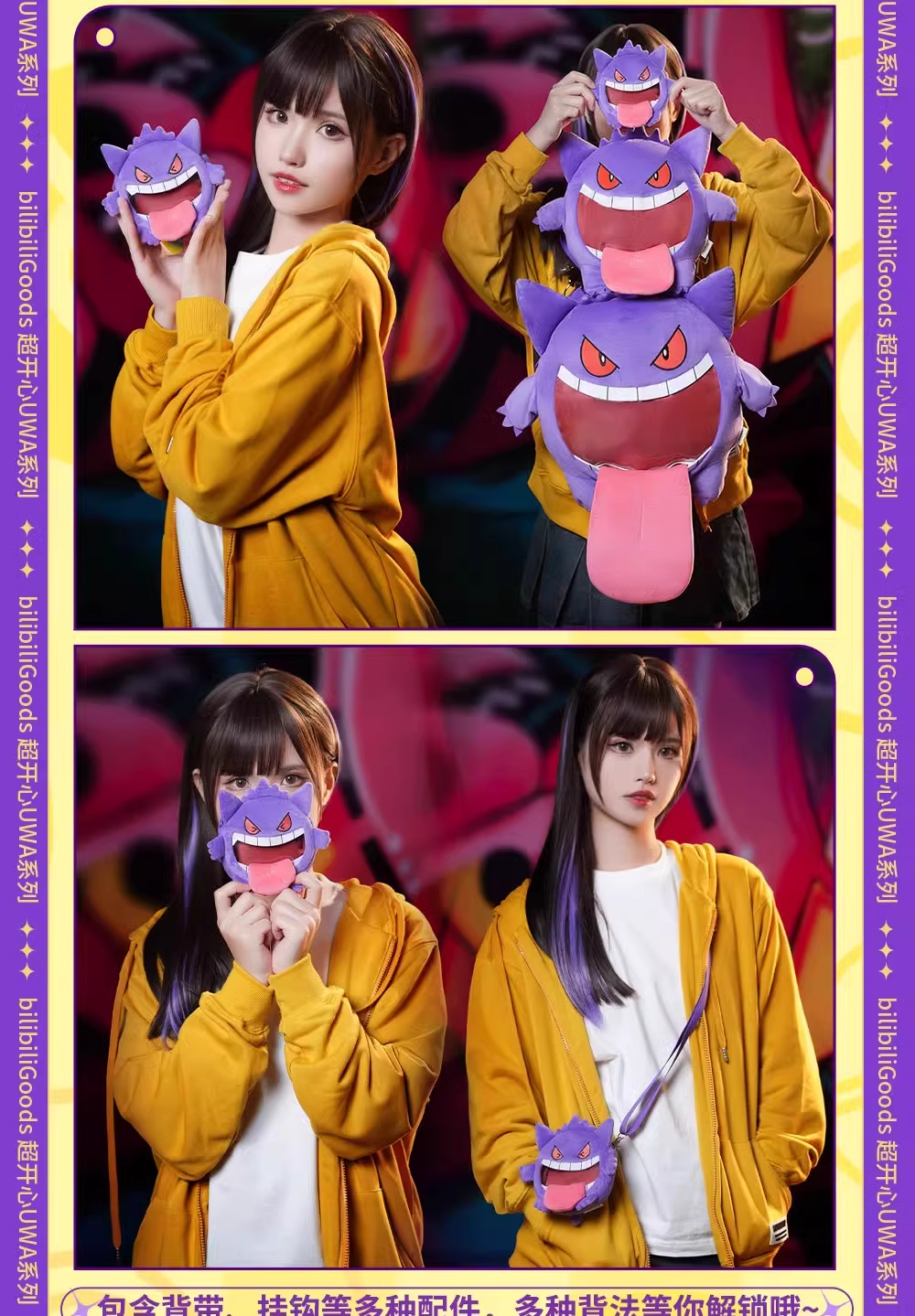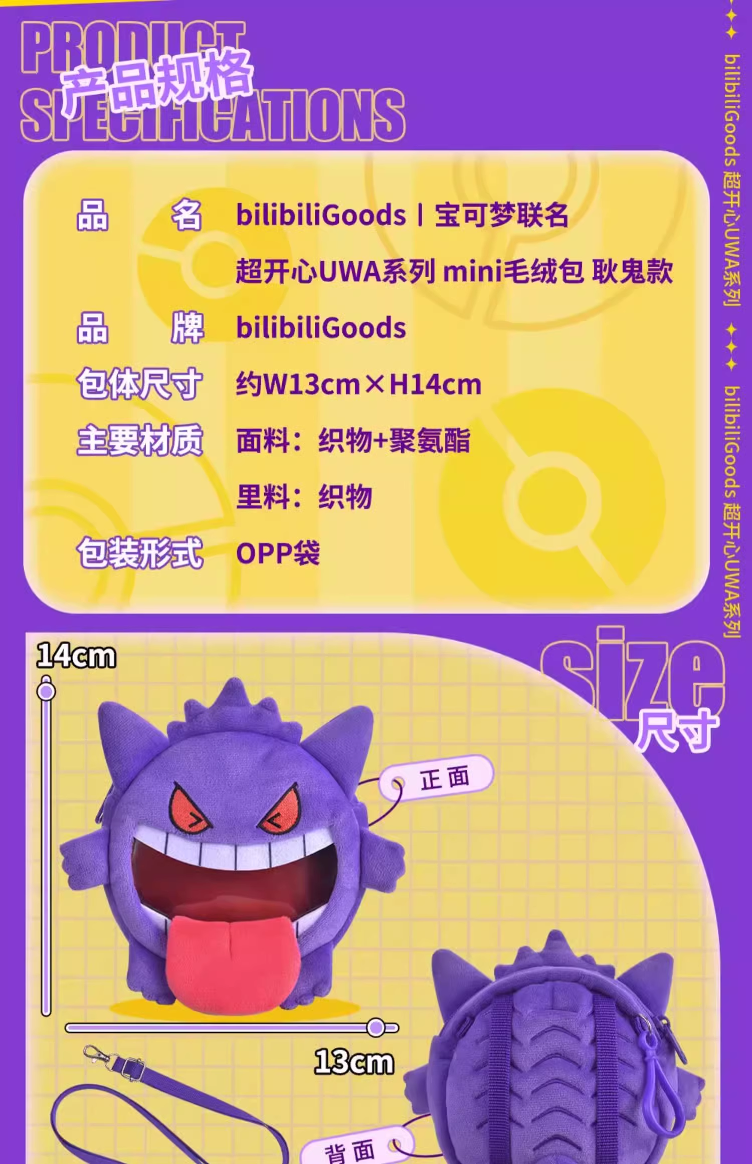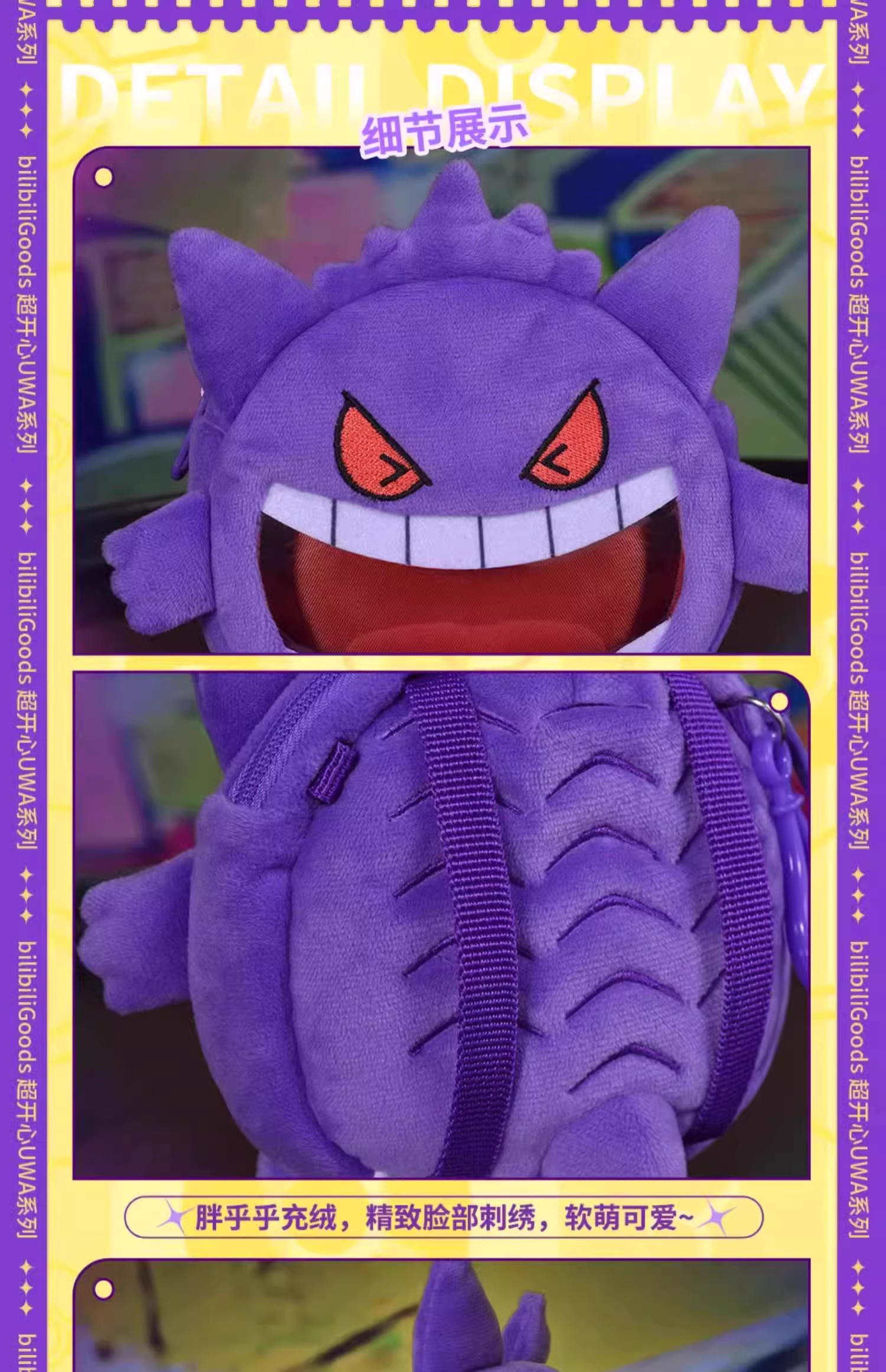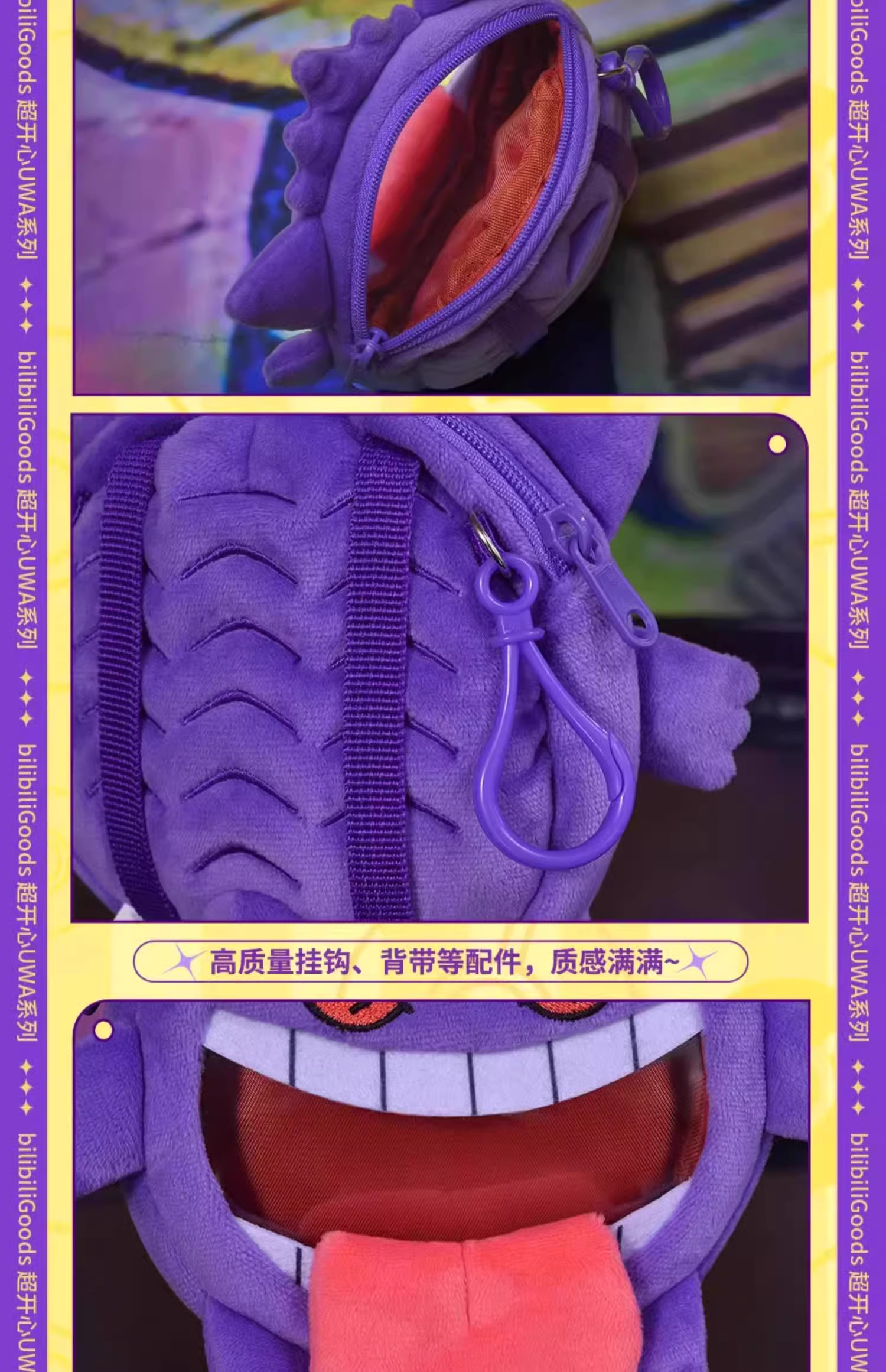 BilibiliGoods宝可梦联名 超开心UWA系列 MINI毛绒斜跨包 耿鬼款