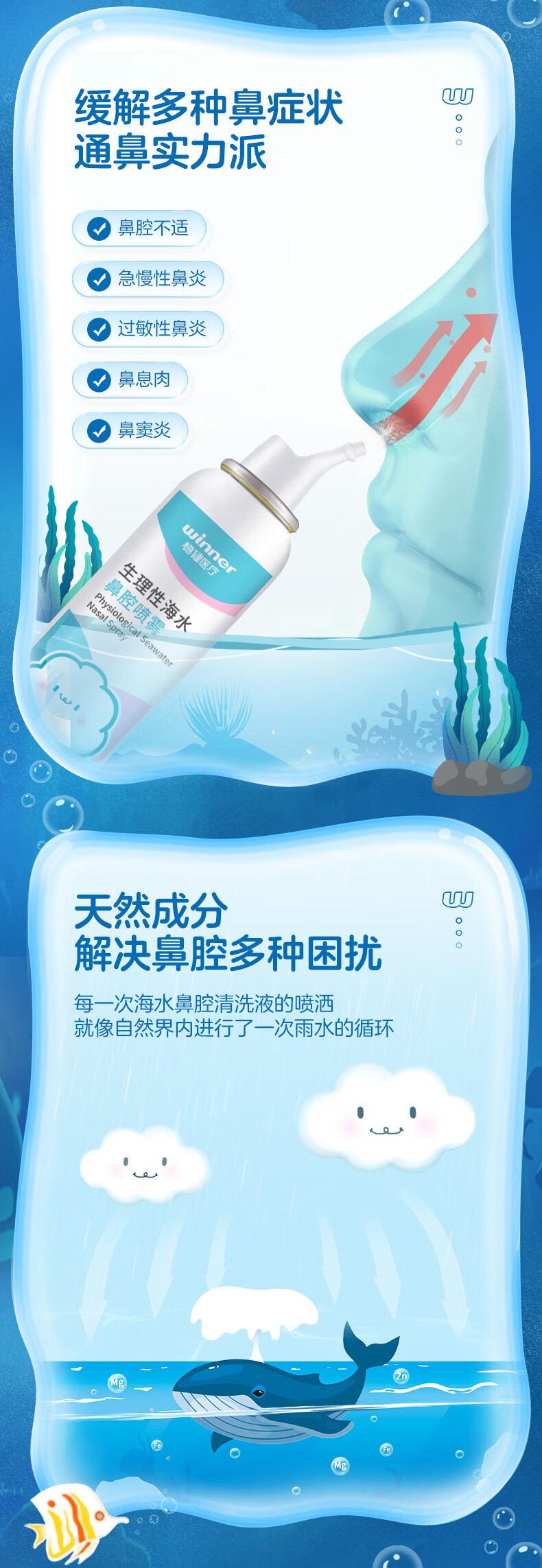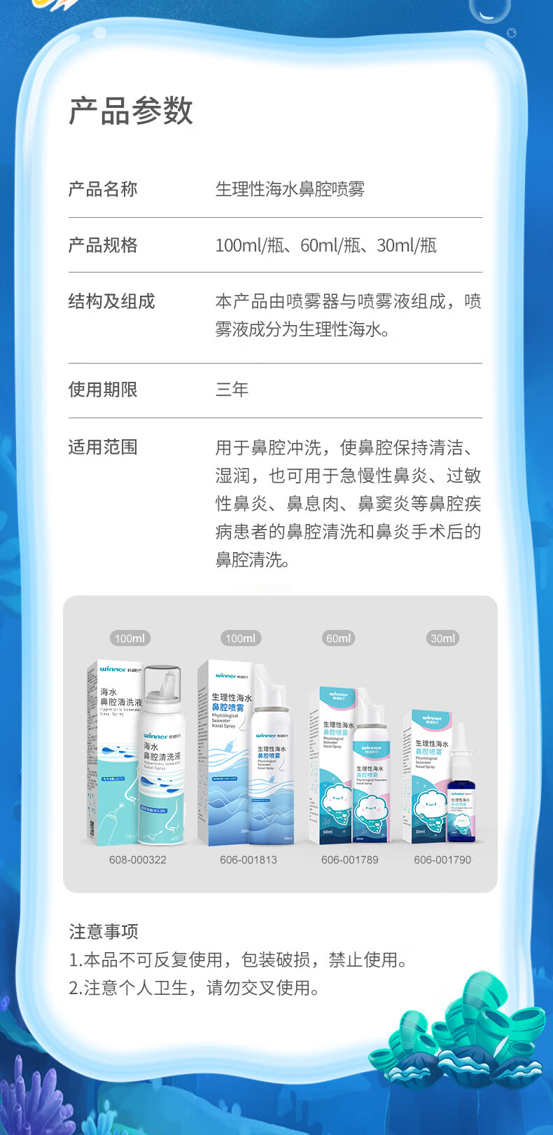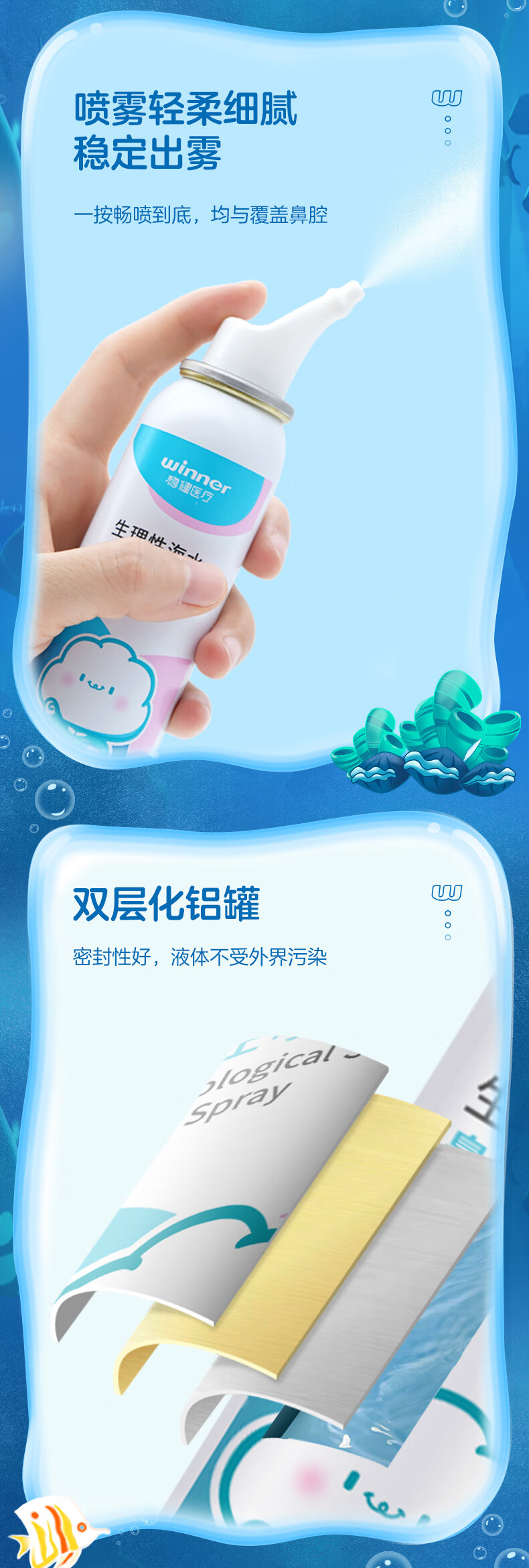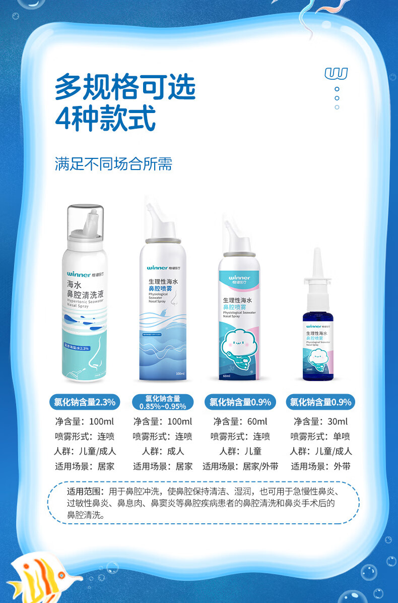 稳健(Winner)洗鼻器0.9%等渗海盐水鼻腔喷雾生理性盐水鼻炎鼻腔清洗液成人儿童 100ml