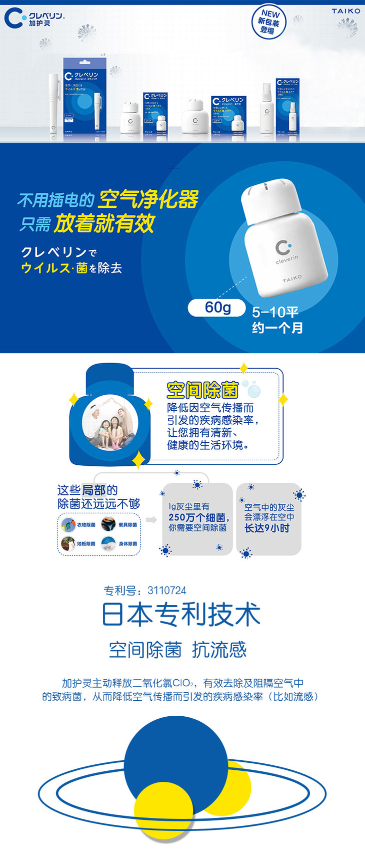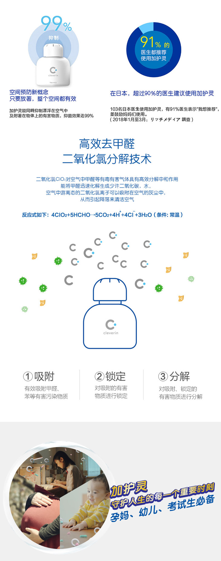 (超值)日本原装进口Cleverin加护灵 去甲醛家用杀菌空气净化器