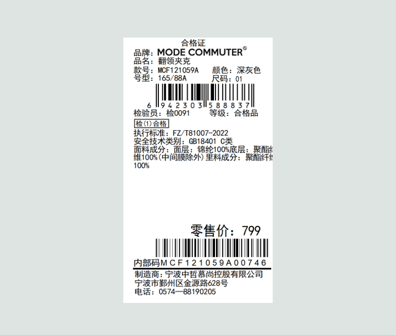 MODE COMMUTER | MC春季条感纹理梭织轻工装立领夹克MCF121059A