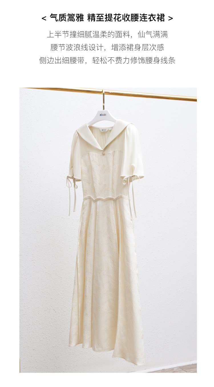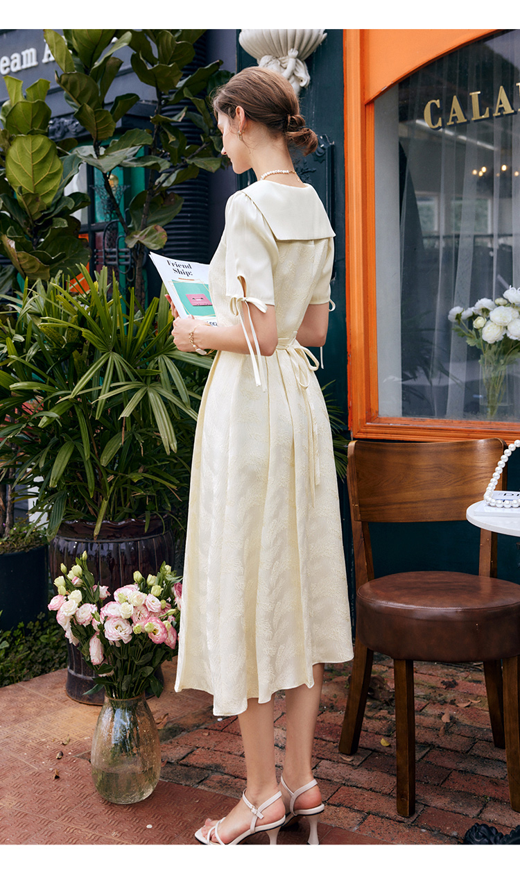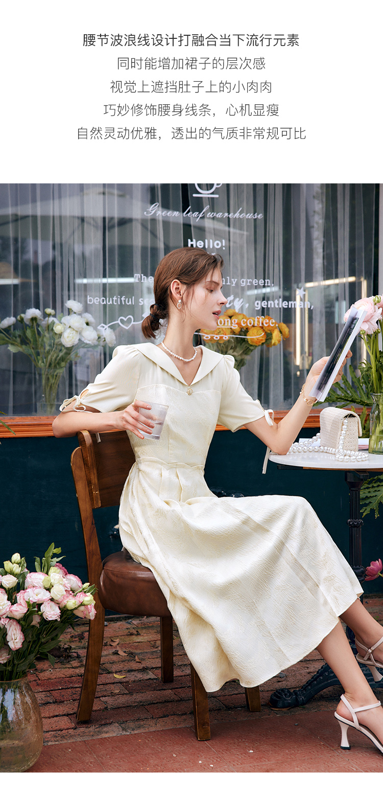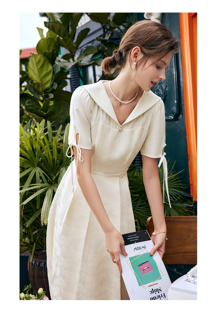 欧芮儿海军领连衣裙女夏季2022新款收腰法式系带设计感a字仙女裙