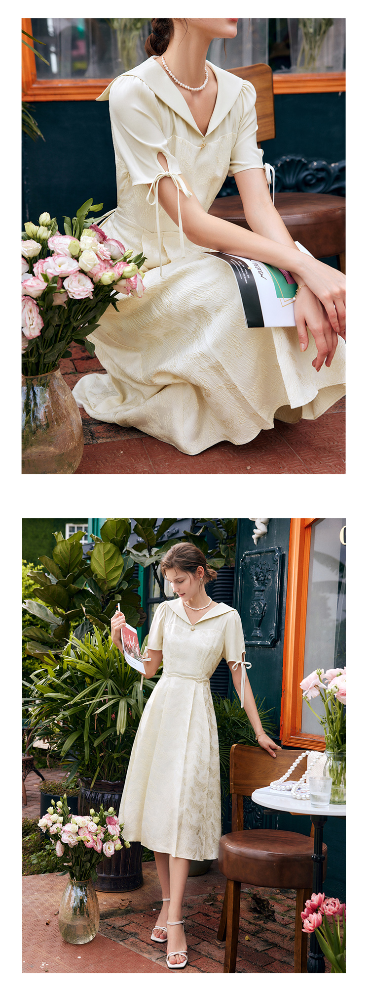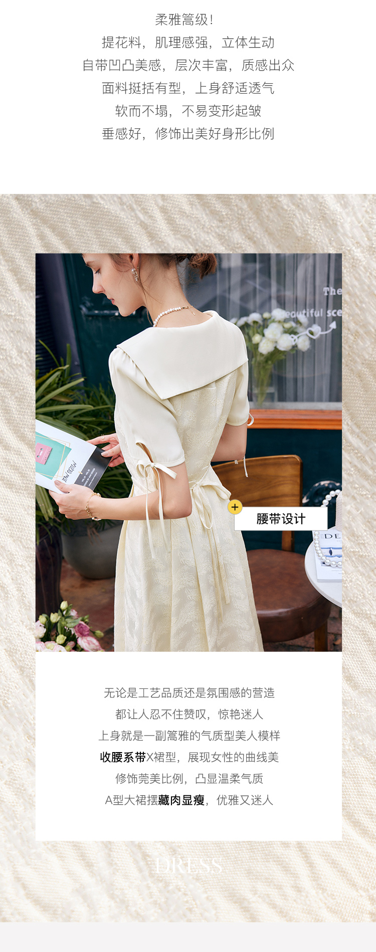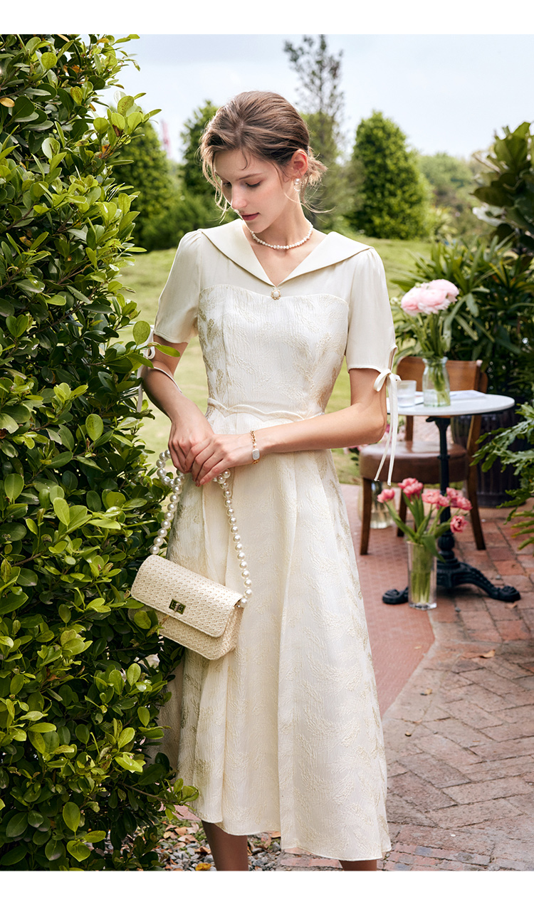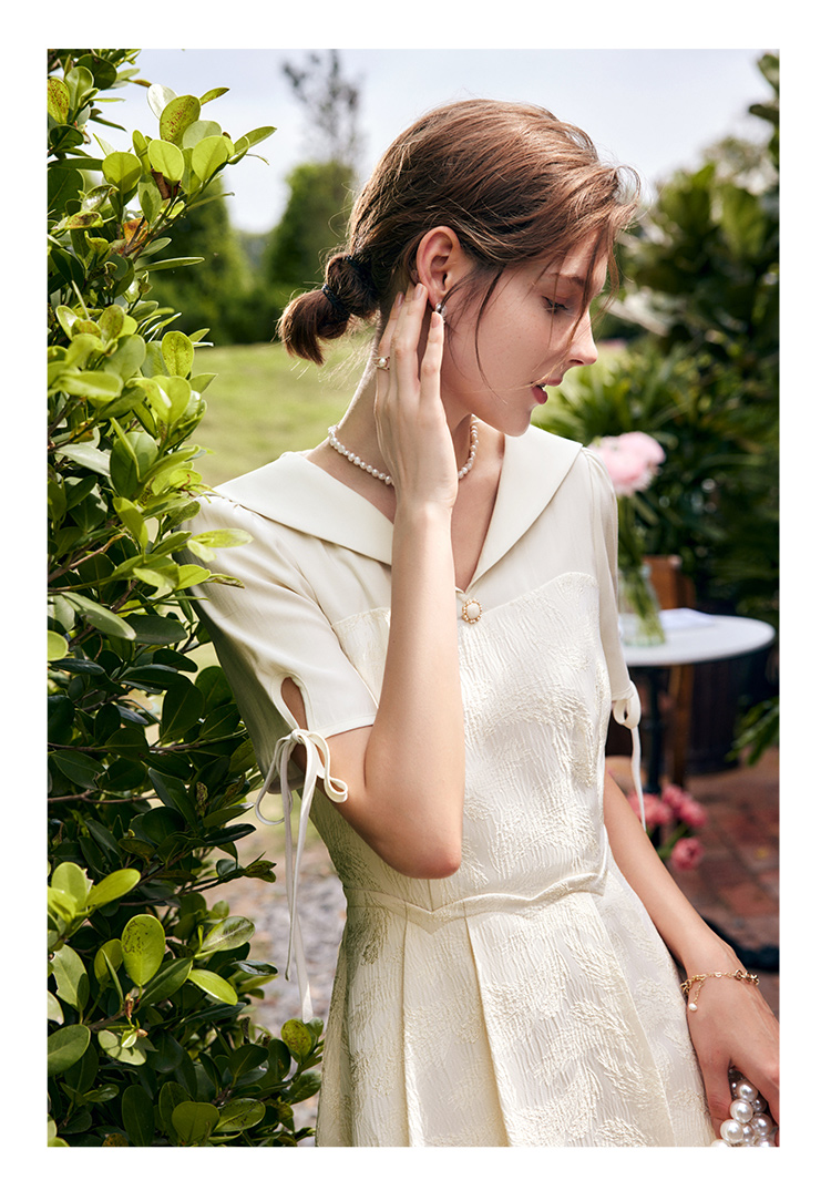 欧芮儿海军领连衣裙女夏季2022新款收腰法式系带设计感a字仙女裙