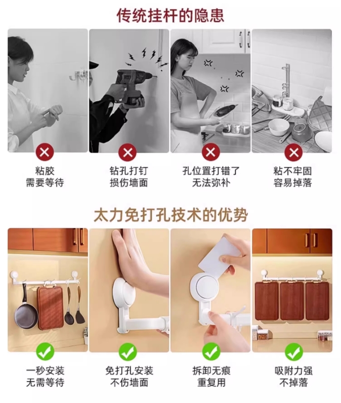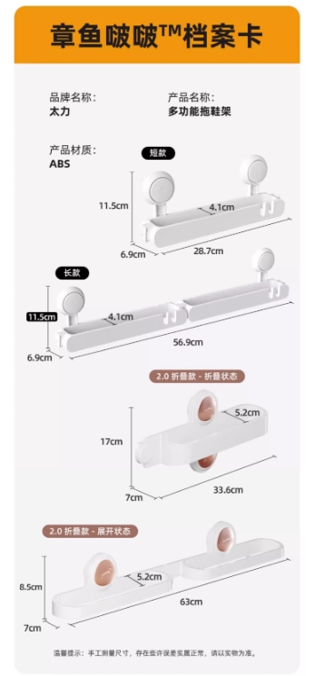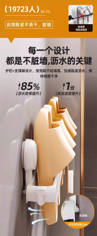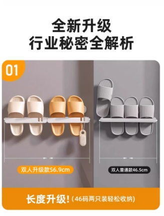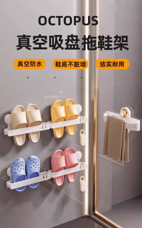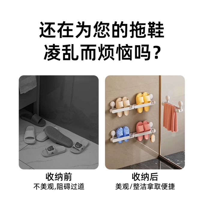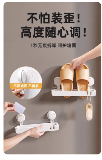 太力拖鞋挂架 浴室免打孔卫生间壁挂式收纳鞋子厕所门后吸盘沥水架3.245
