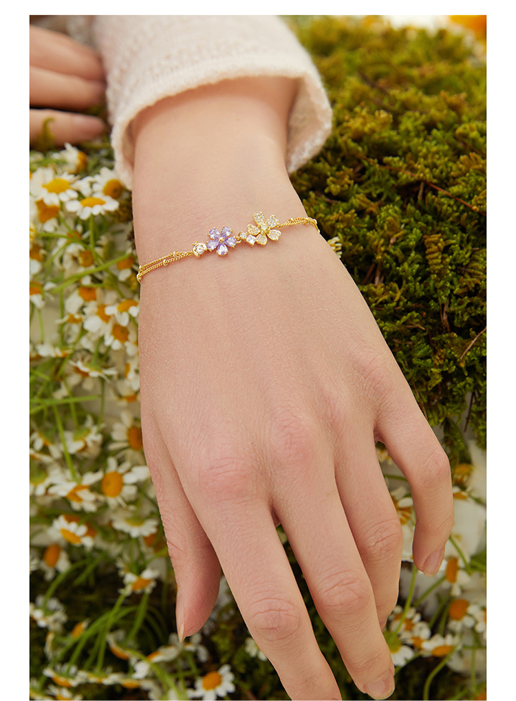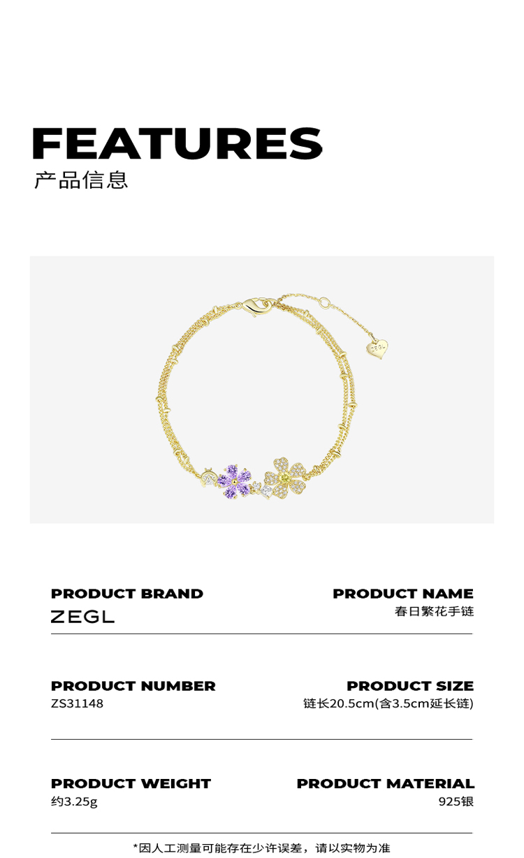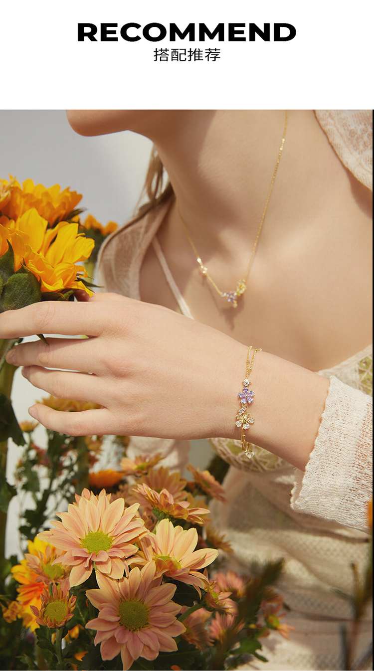 ZEGL设计师春日野趣系列925纯银花朵手链女ins小众设计闺蜜手饰品