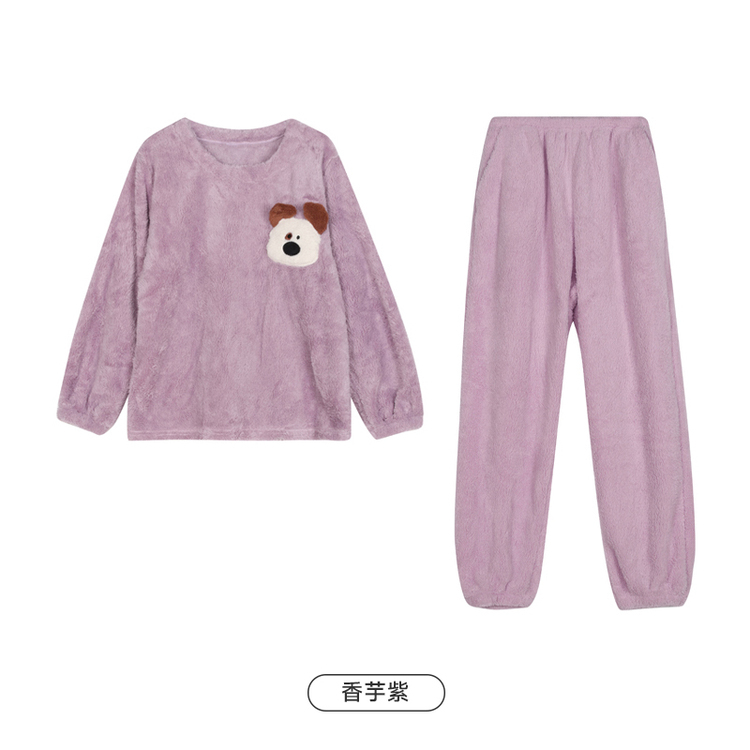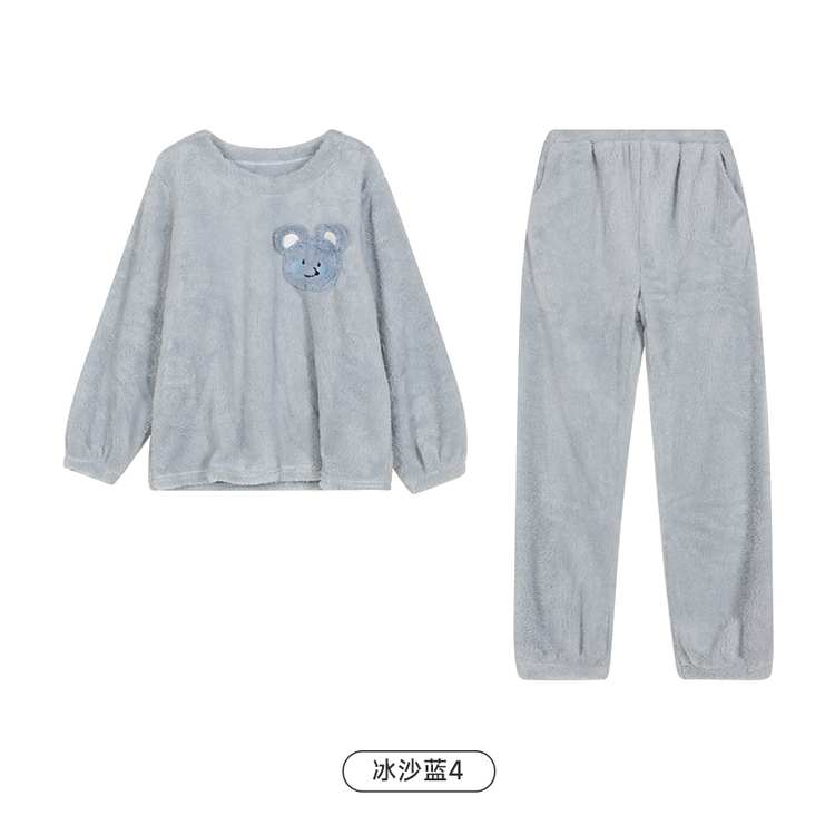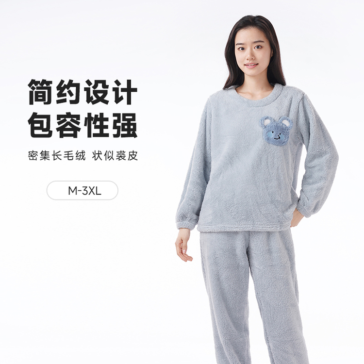 都市丽人睡衣长毛绒睡衣女士家居服长袖长裤法兰绒套装LHH2R1