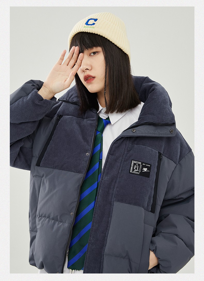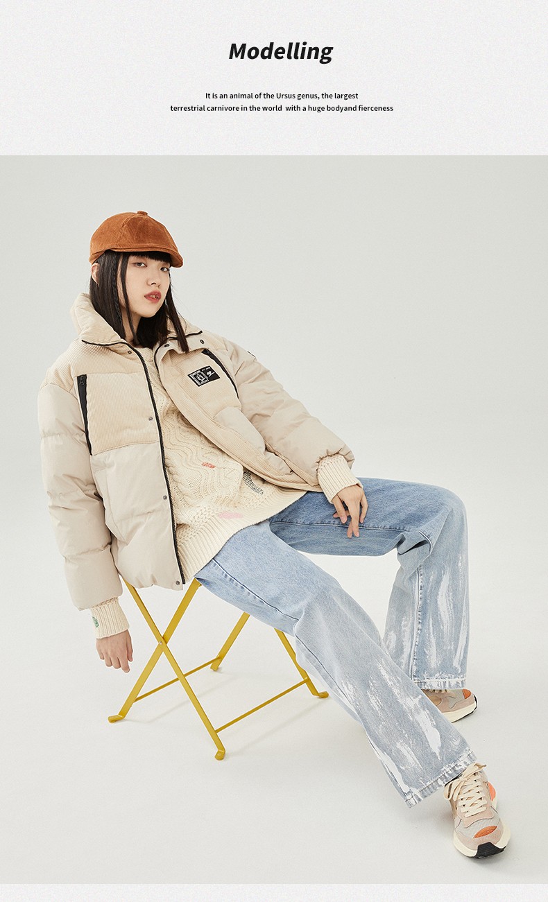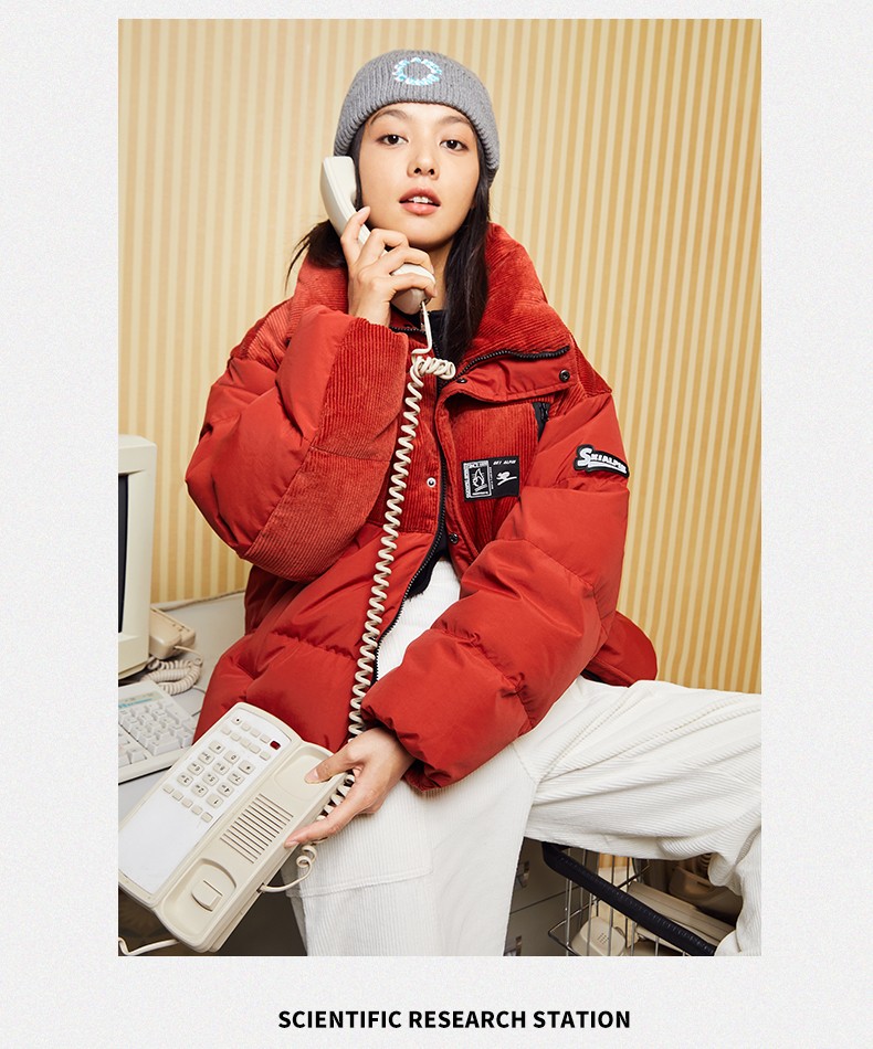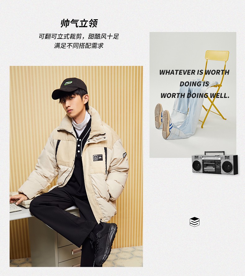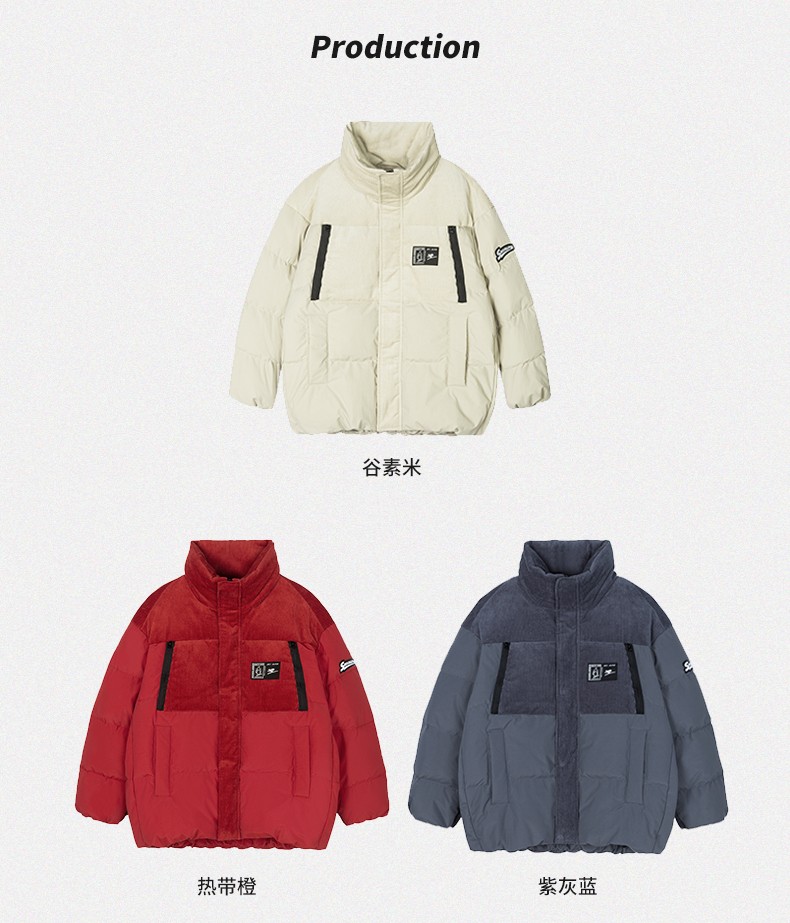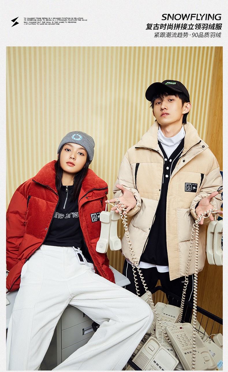 雪中飞羽绒服2021秋冬新款复古时尚拼接立领羽绒服X10140630G