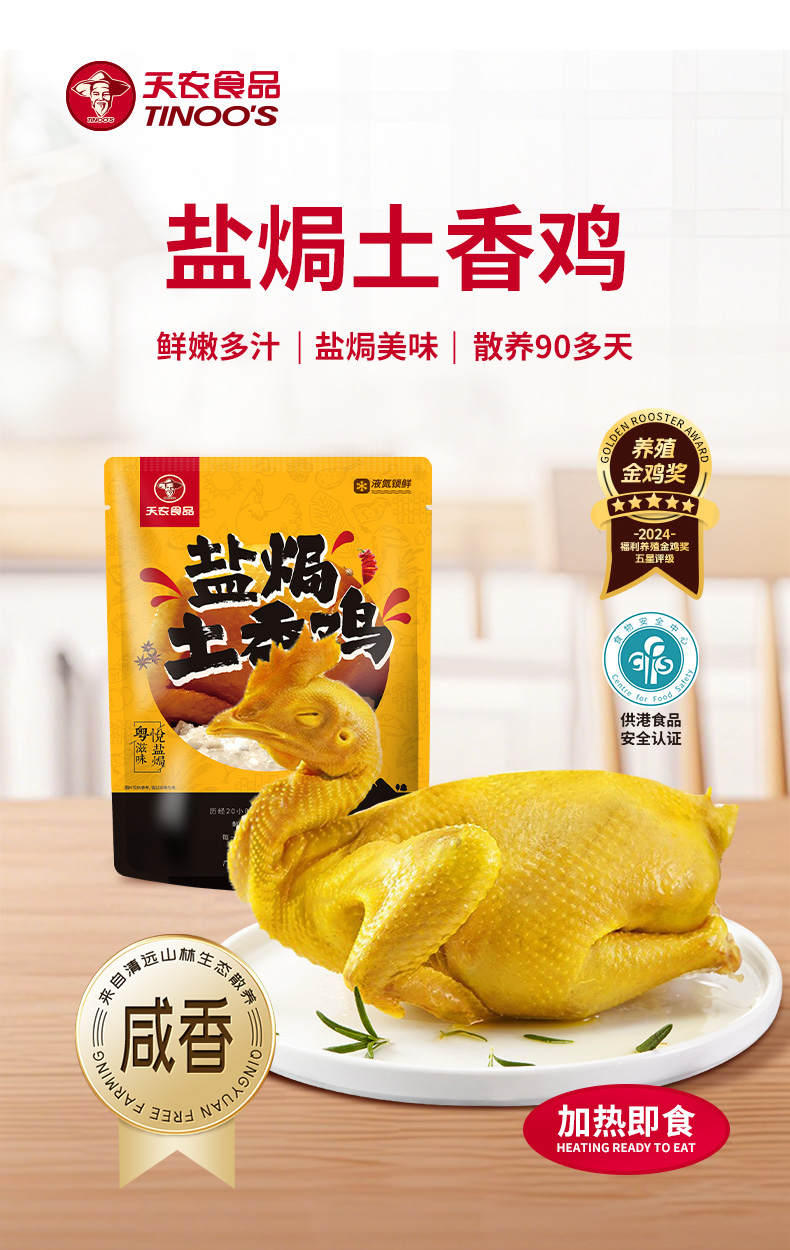 【买一送一】天农盐焗土香鸡500g (120天土鸡制成)