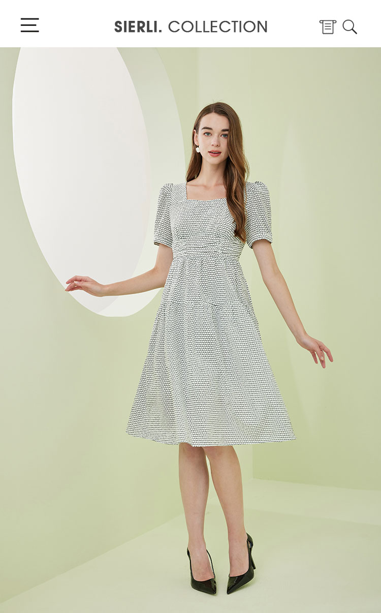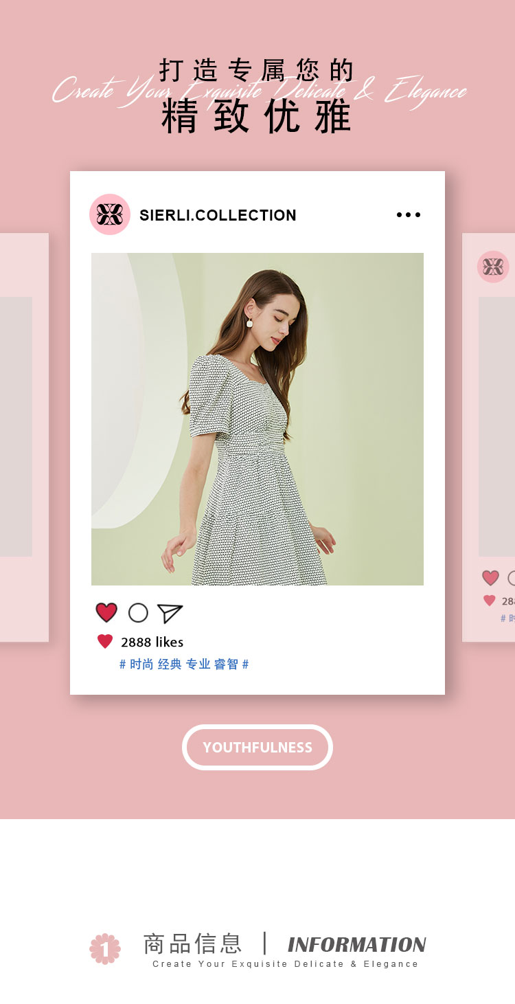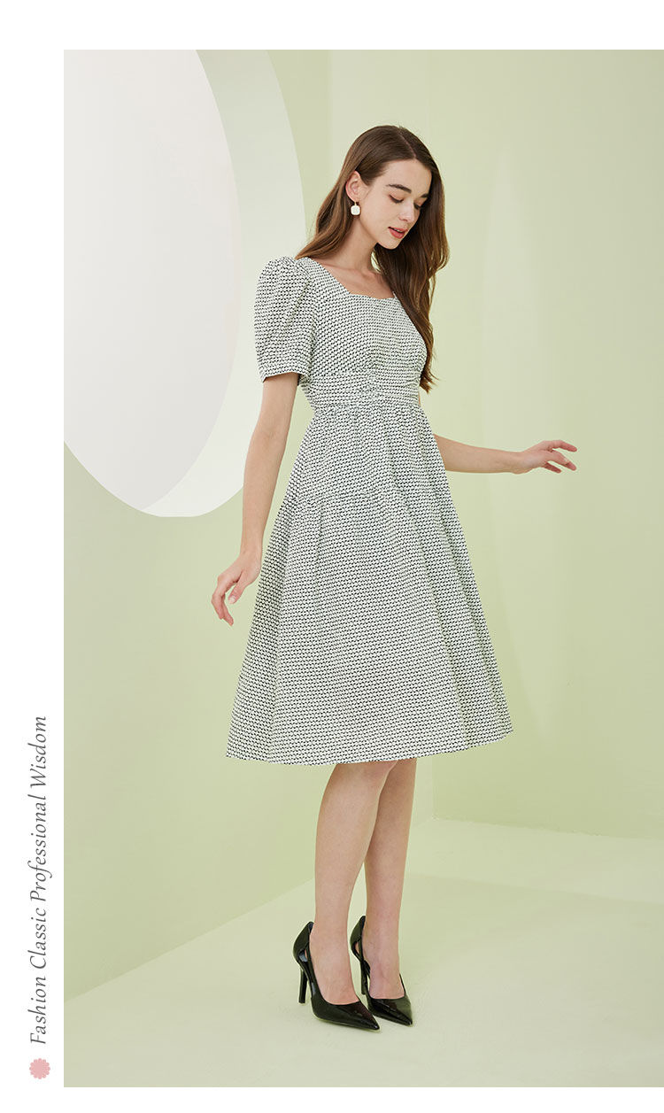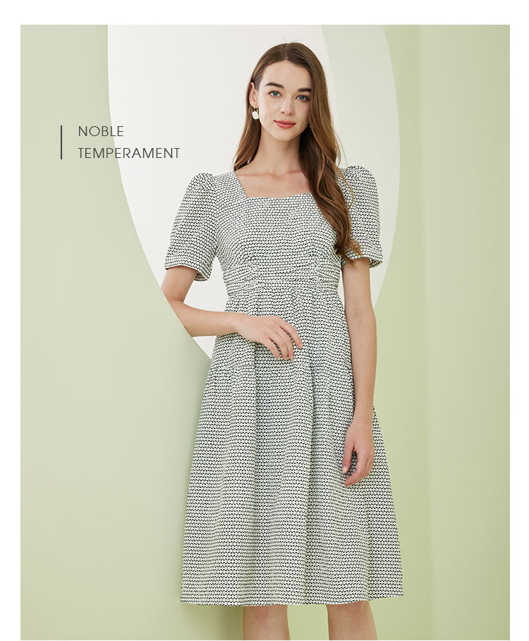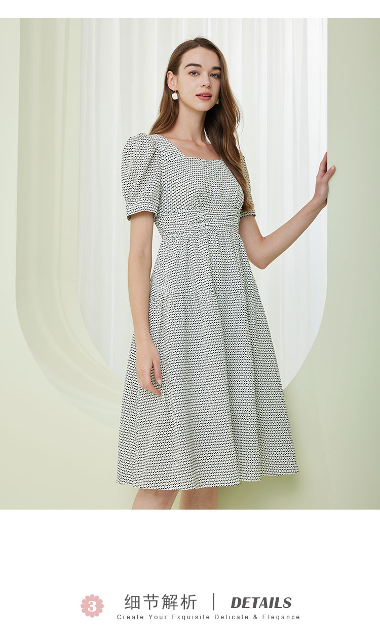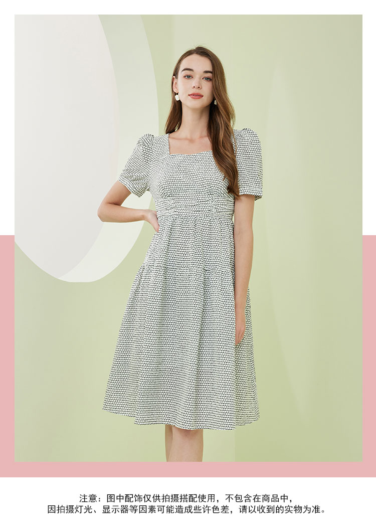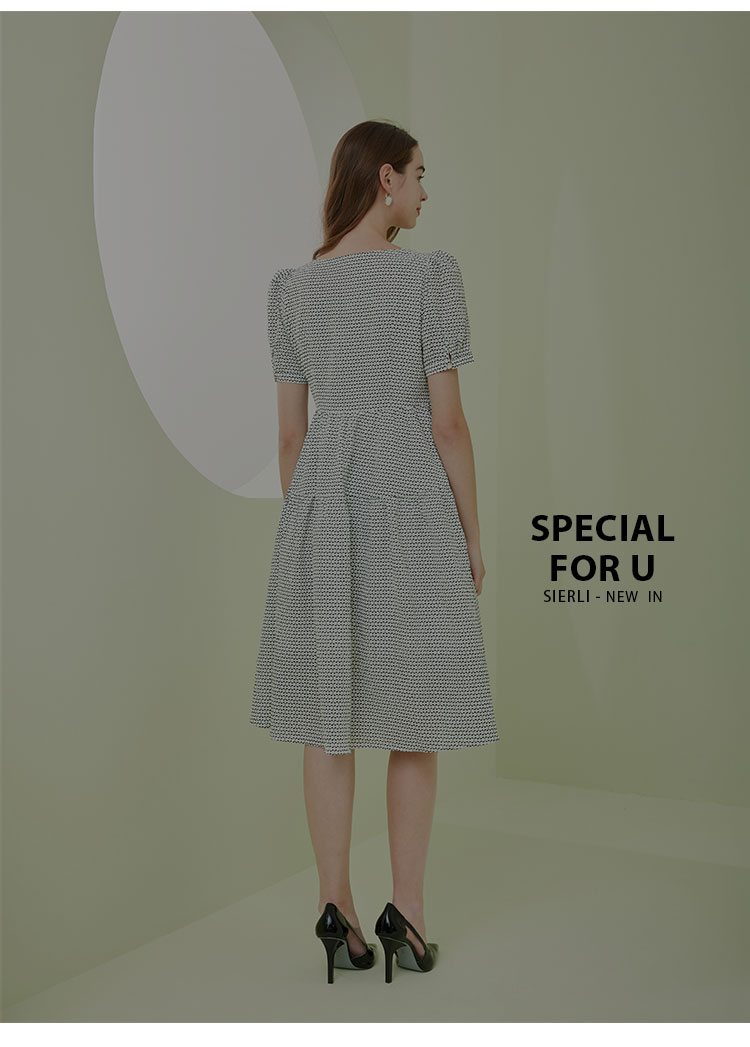 NF8U9斯尔丽瑟俪2023春夏新款法式浪漫高腰节A摆短袖连衣裙