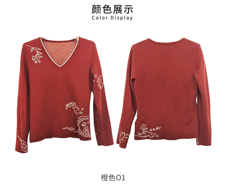 VIVIAN LIU薇薇安刘F2556301秋季女装新款v领提花修身毛衣