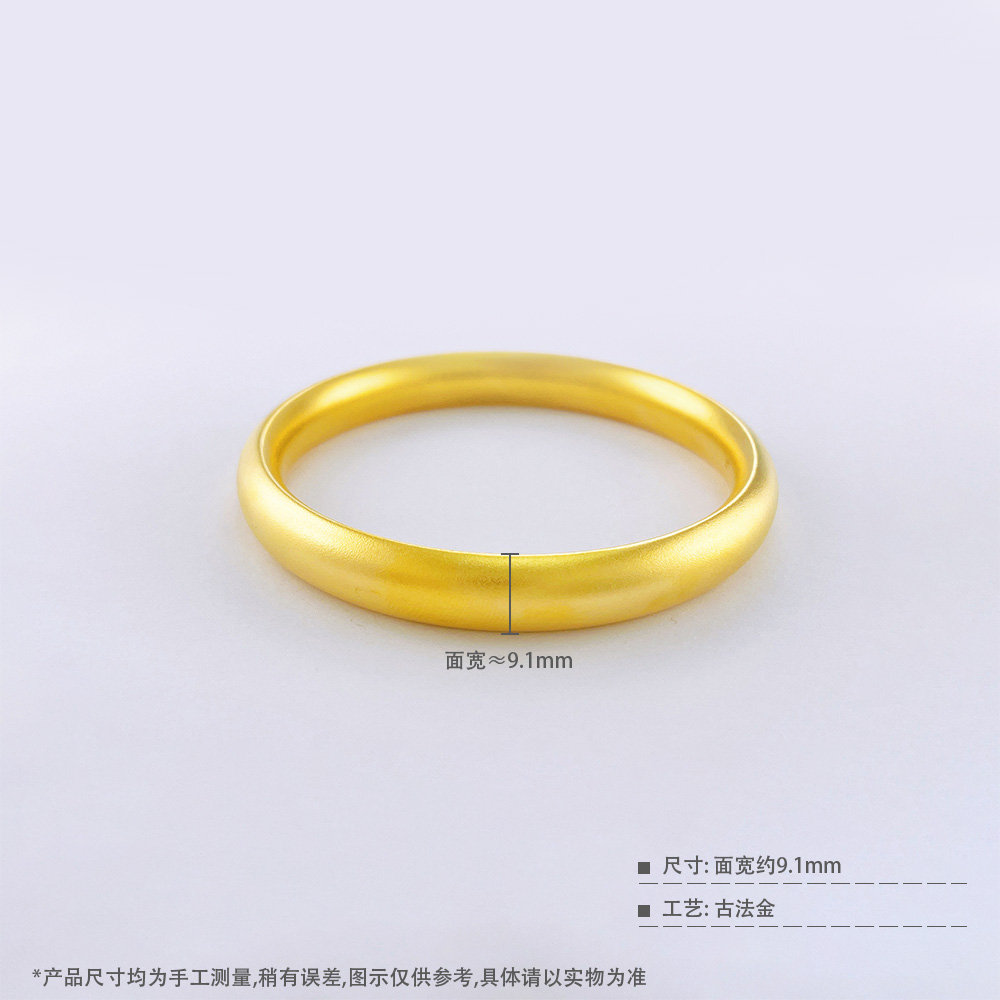 【限时克减150元】足金999.9 #超轻 古法空心固口手镯光圈扁形素圈手镯(面宽约8.9-9.3mm)(AIGFSZ00873-4)(预售产品下单后不退款不退货不换货不补差价)