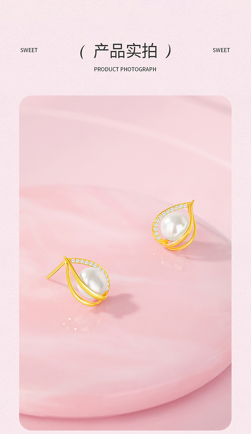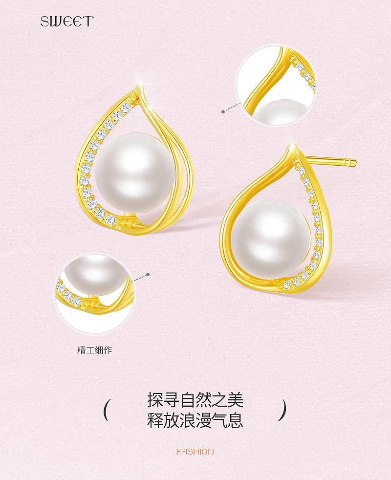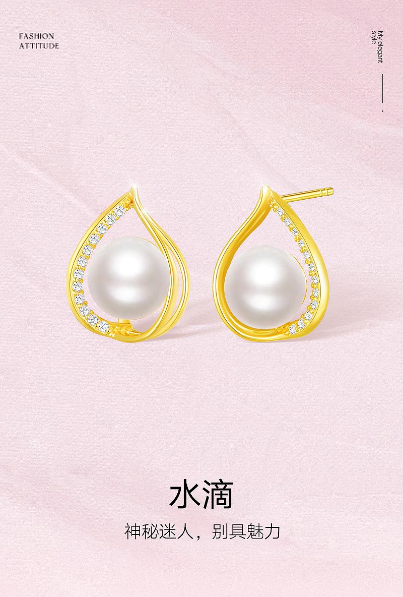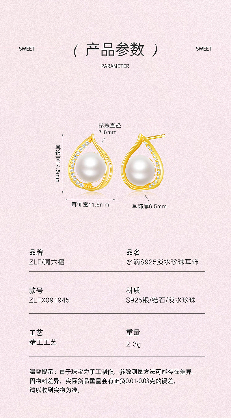 周六福水滴S925淡水珍珠耳饰ZLFX091945★