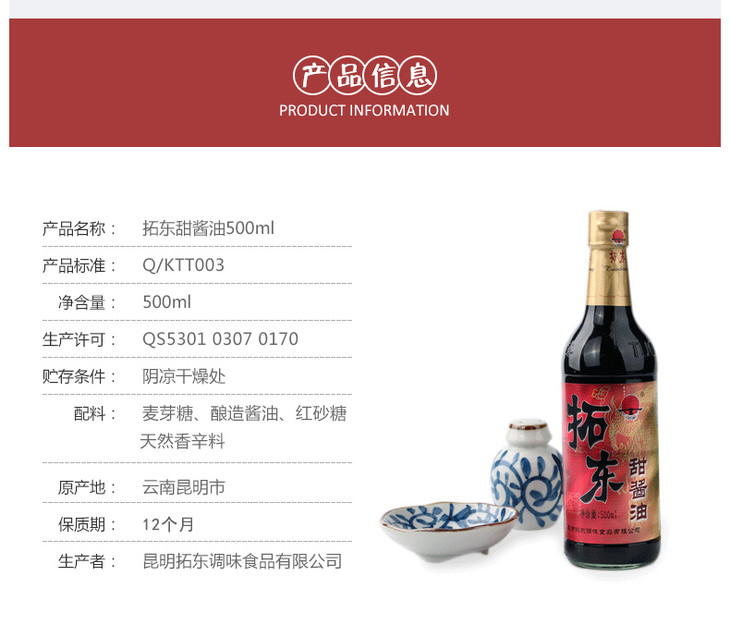云南特产昆明拓东甜酱油500ml瓶装酿造 凉拌米线卤菜厨房调味品