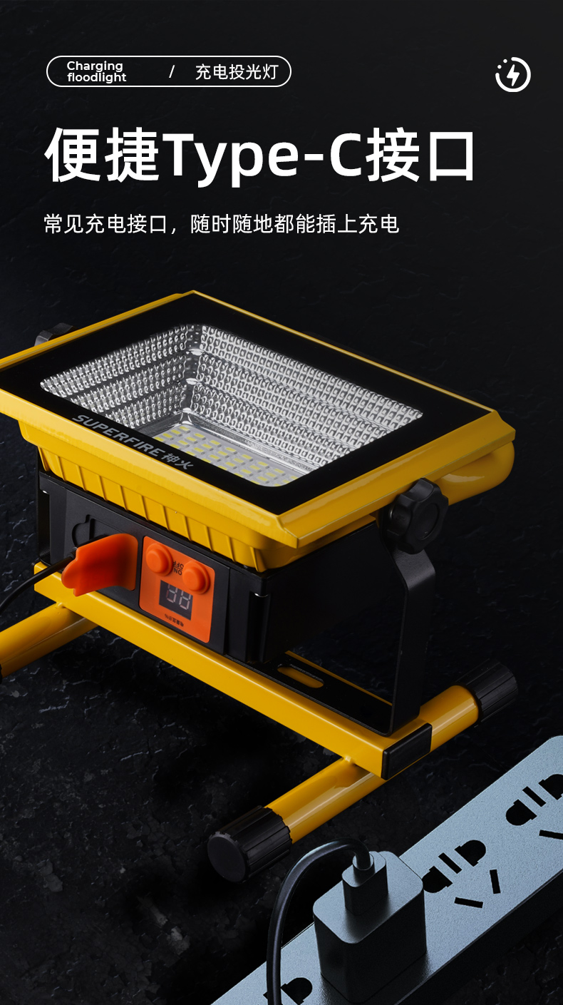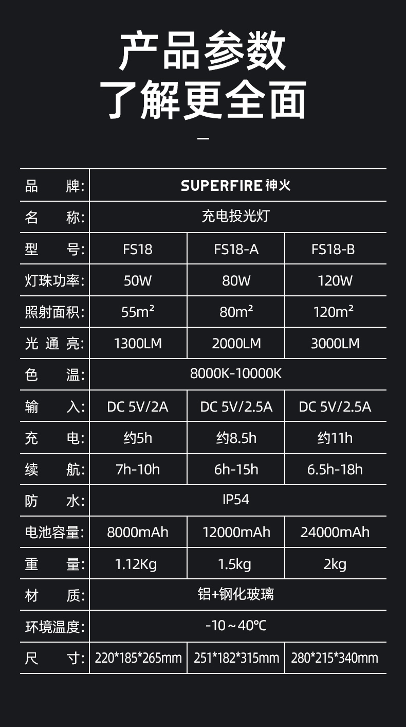 神火FS18投光灯强光露营夜市可充电户外照明手提便携照明灯