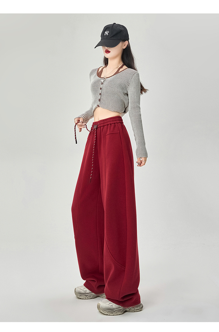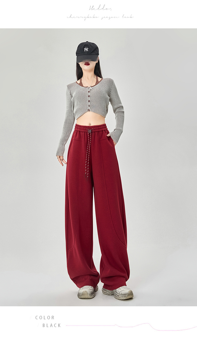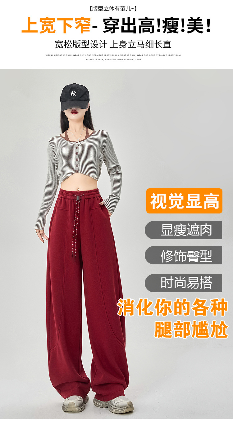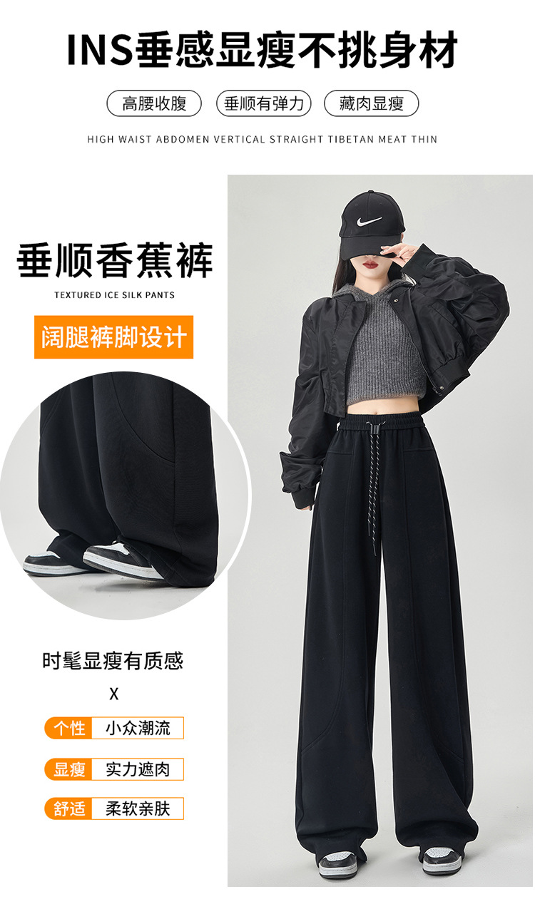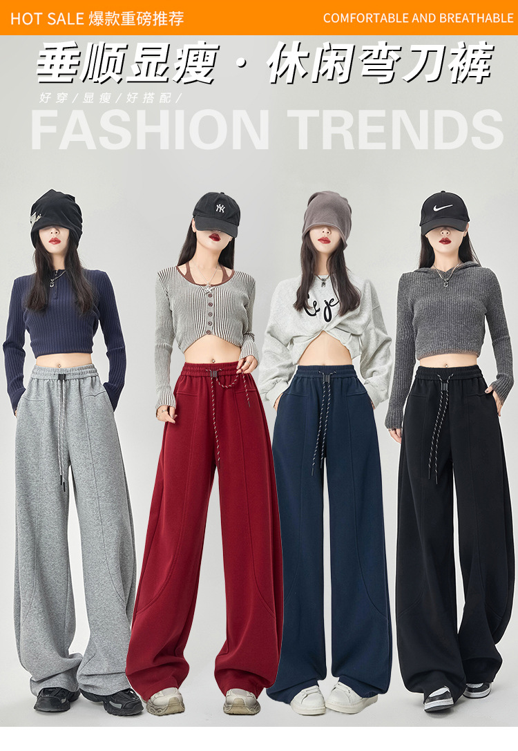 【美式运动多色香蕉阔腿裤】春夏季新款 高腰休闲宽松直筒弯镰刀卫裤