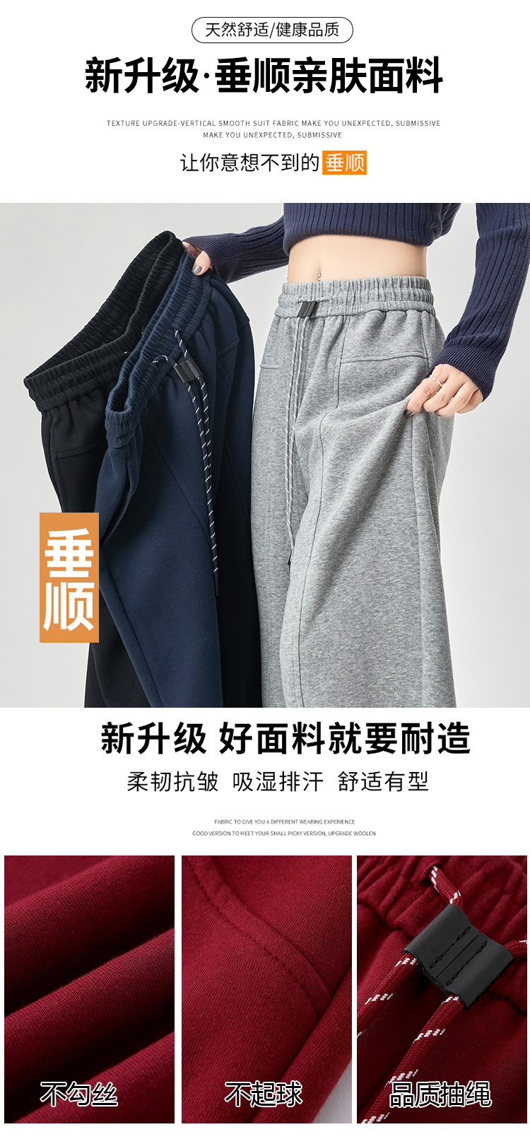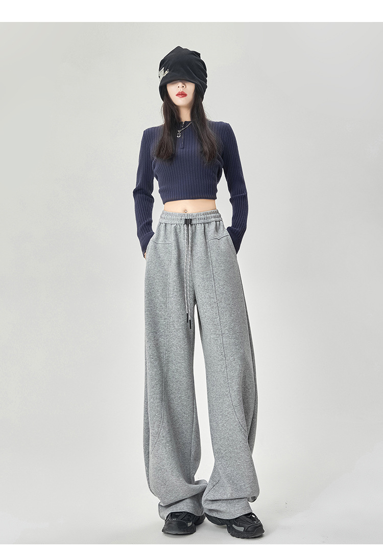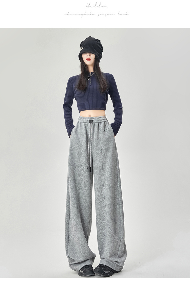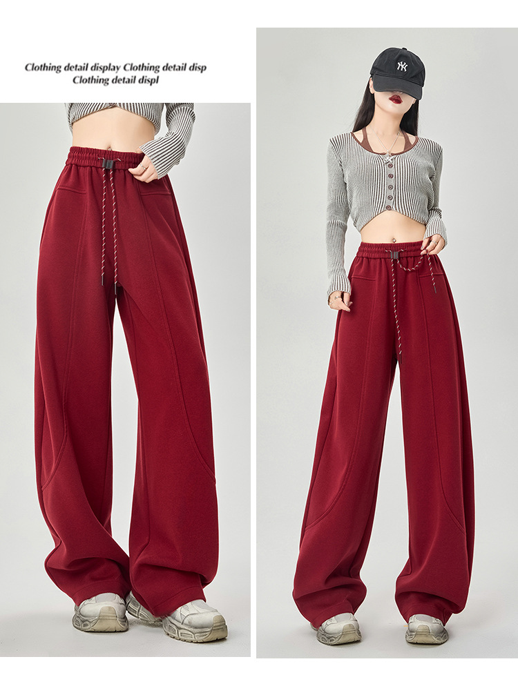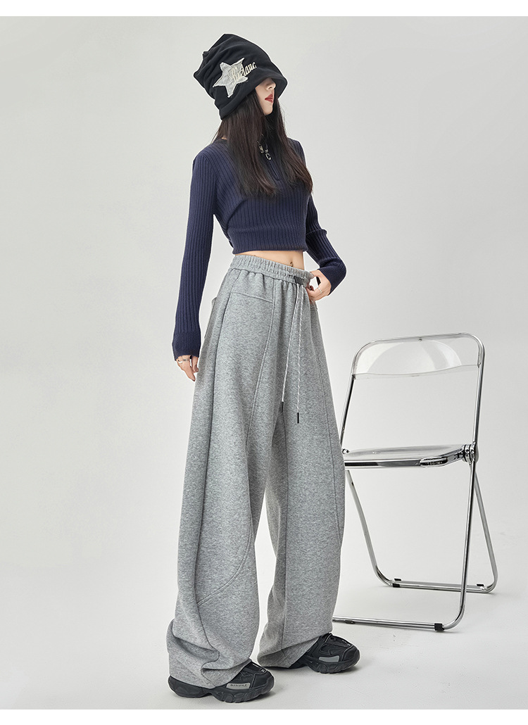 【美式运动多色香蕉阔腿裤】春夏季新款 高腰休闲宽松直筒弯镰刀卫裤