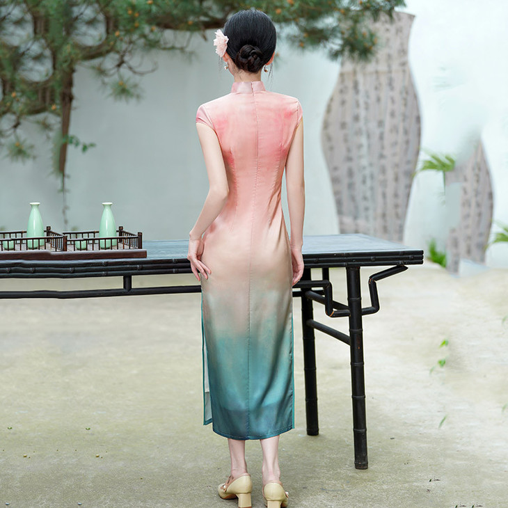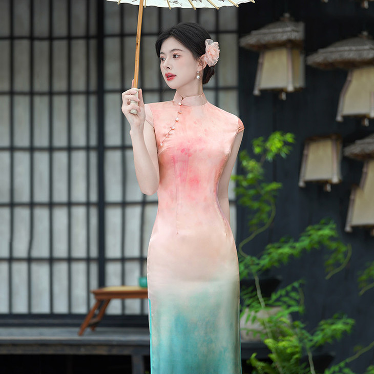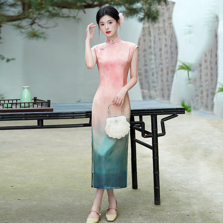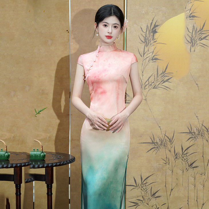 渐变色新中式旗袍改良年轻款修身礼服夏季SC21438