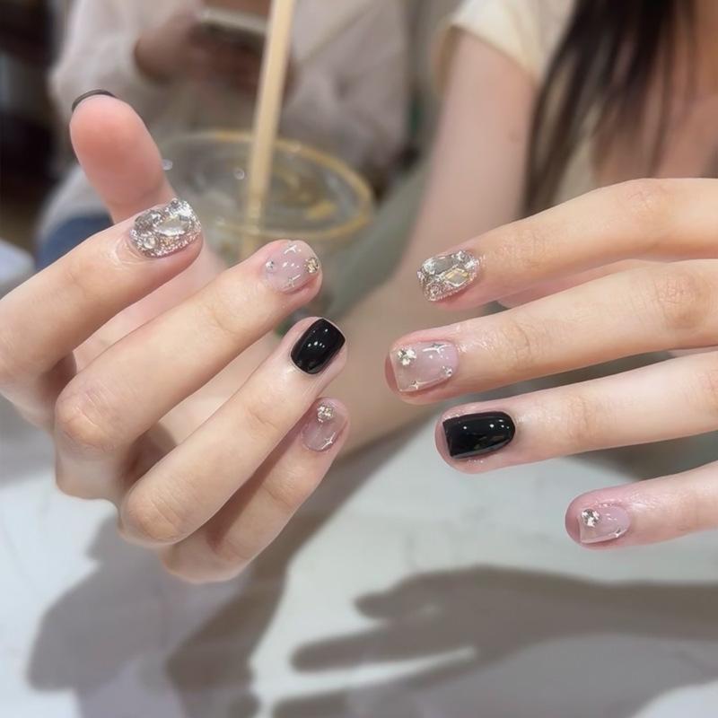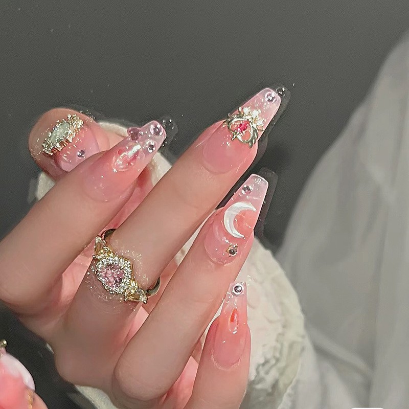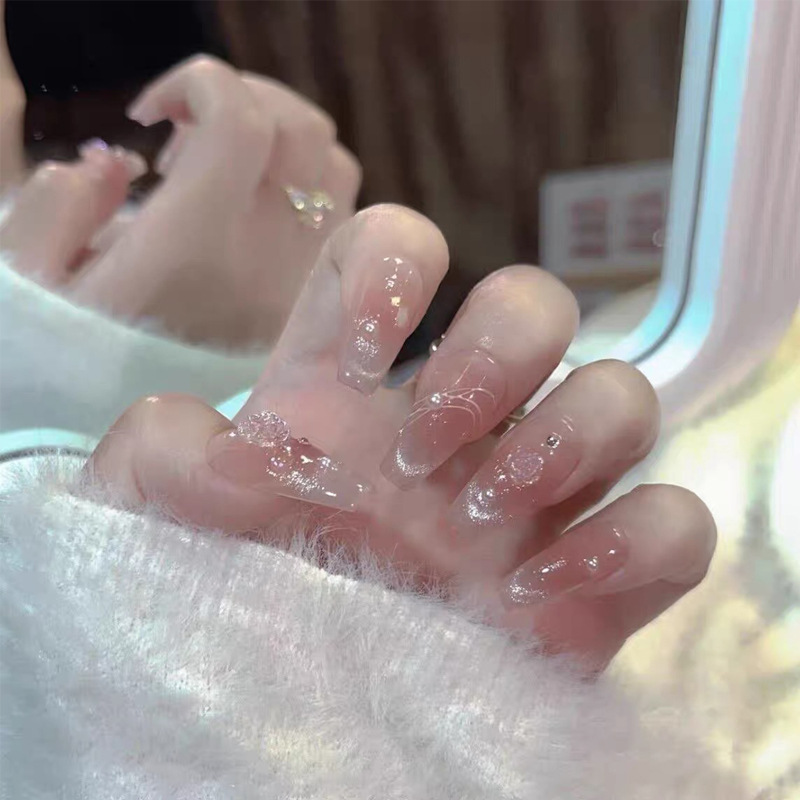 小红书爆款【手工穿戴甲 中长款冰透极光钻】腮红美甲甲片 指甲贴片