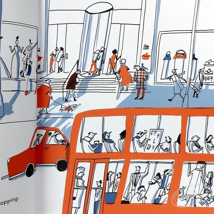 Jam-packed with action and details to find and spot, Where Is Your Sister? is a strikingly confident debut from Puck Koper. Her blue, red and black artwork is printed in eye-catching pantone inks, and her remarkable eye for composition and funny characters marks her out as a talent to watch.