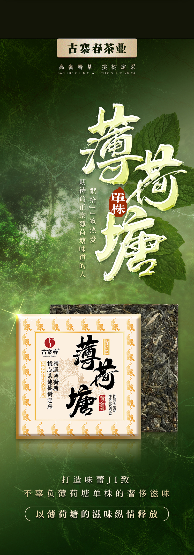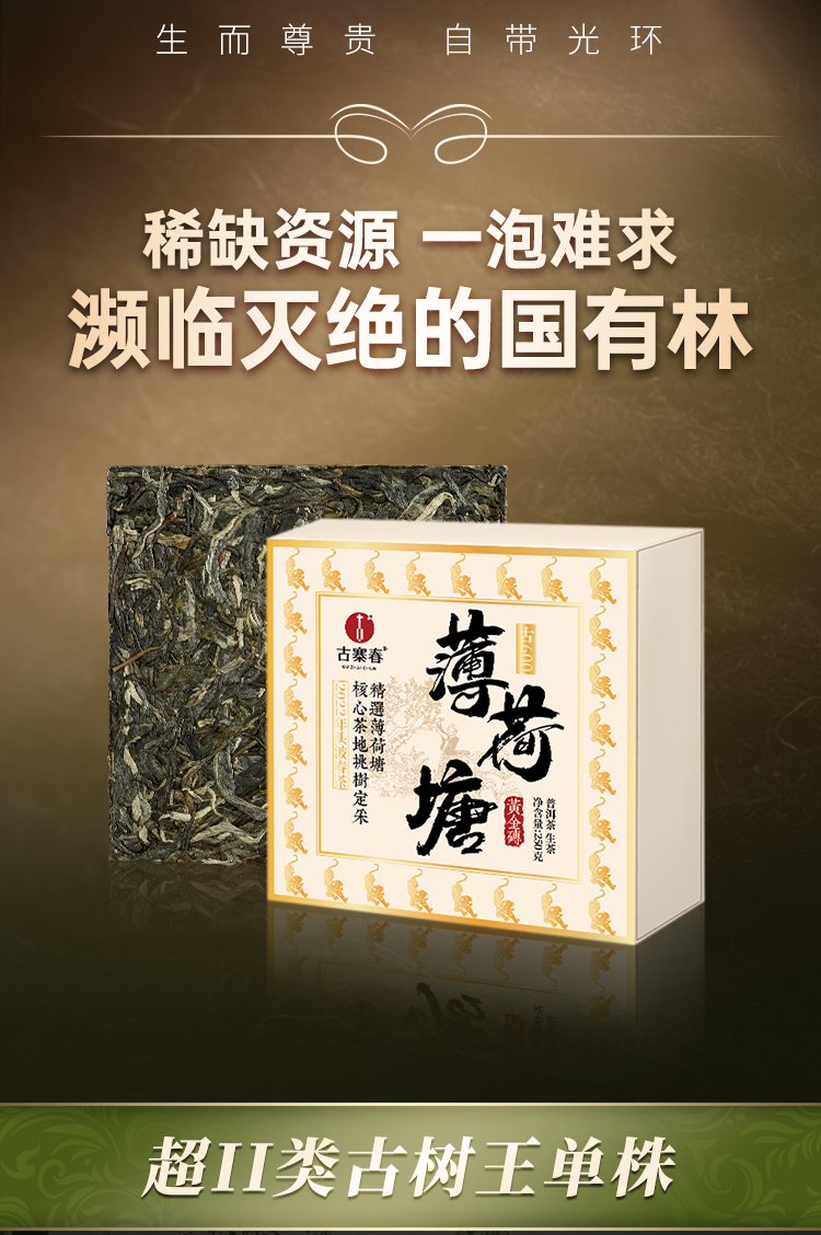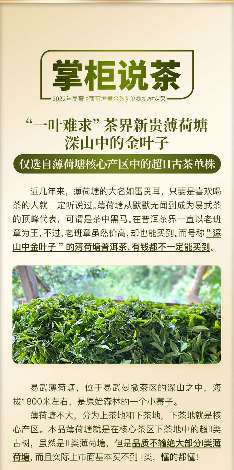 【薄荷塘黄金砖】2022年薄荷塘单株稀缺古树资源普洱茶生茶易武茶区深山中的金叶子250克/砖