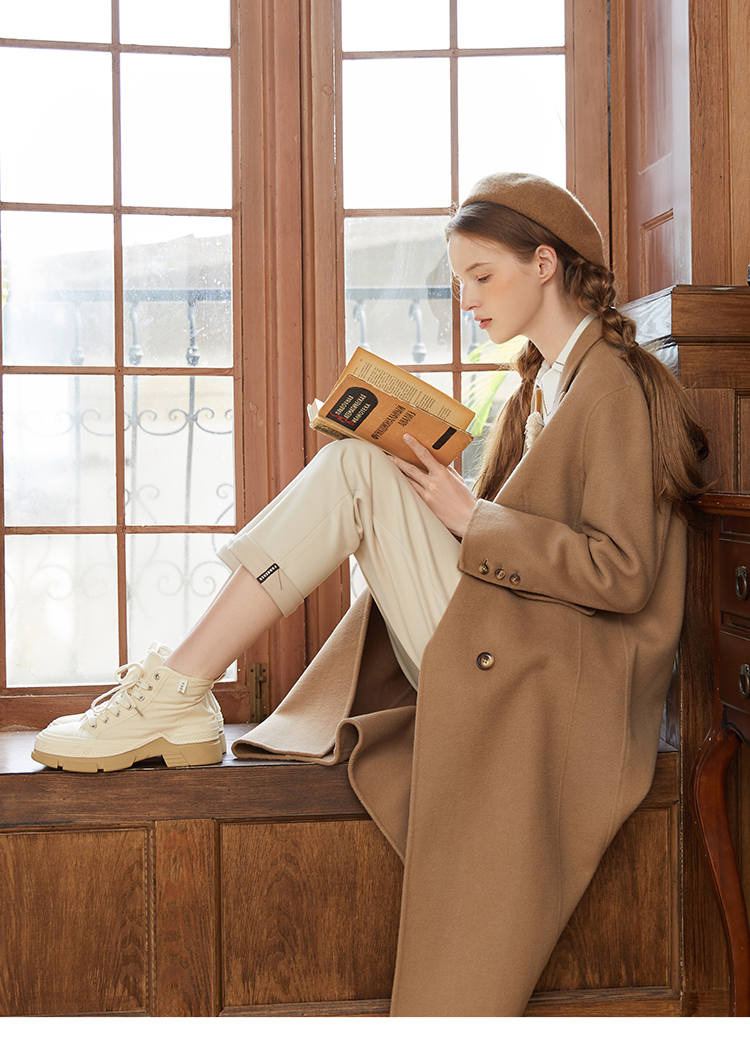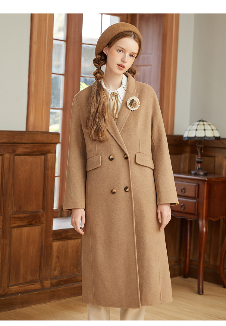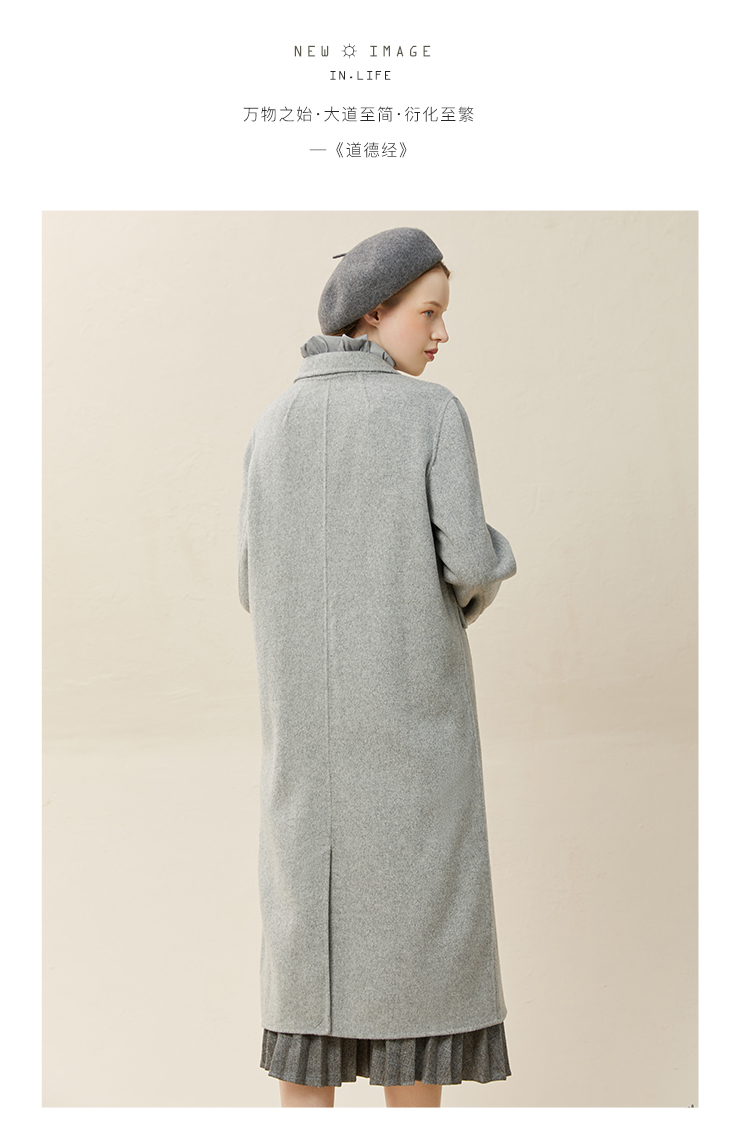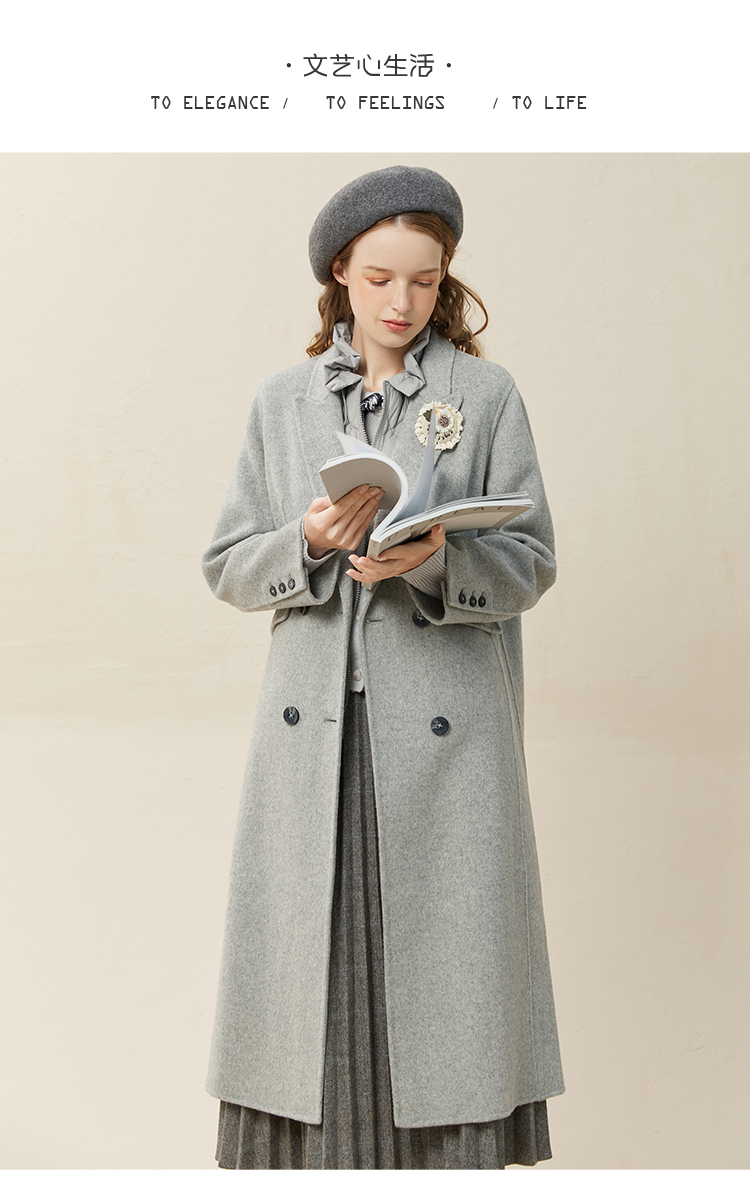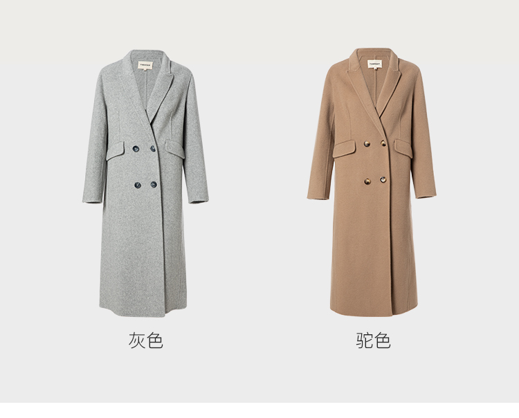 Famecoco范可儿西装领毛呢大衣女羊毛双面呢外套过膝长款F228AQ005