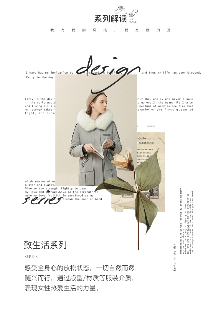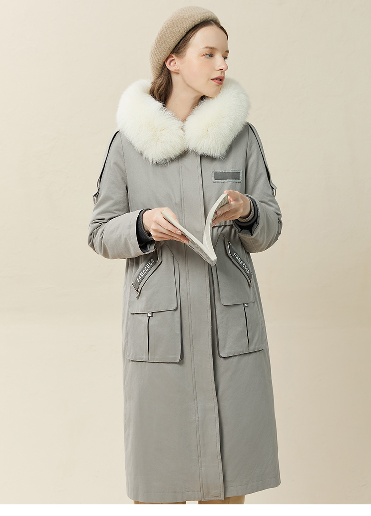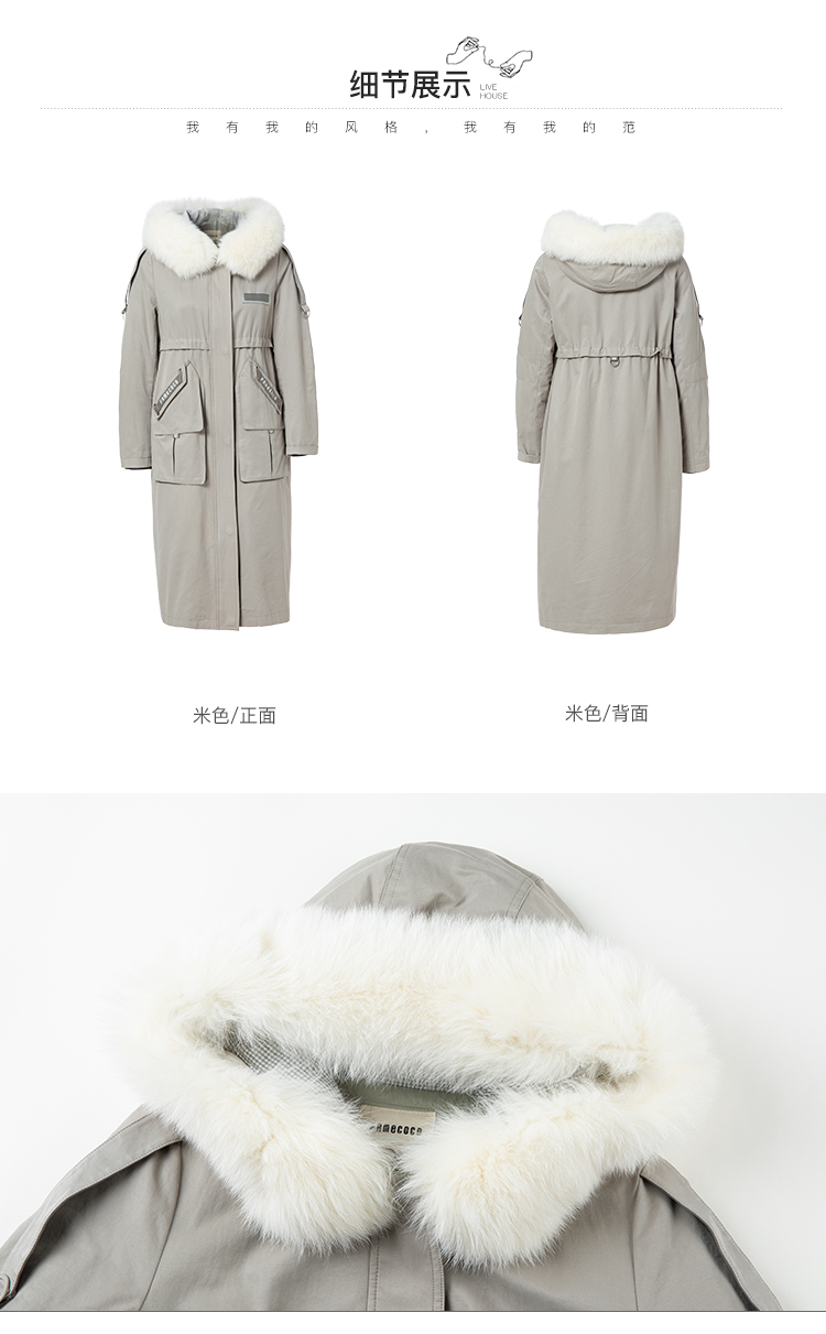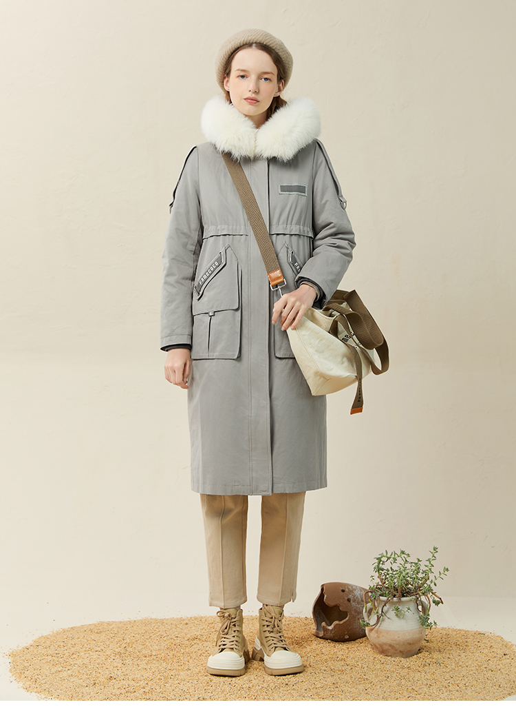Famecoco范可儿防风御寒保暖狐狸毛领羽绒服女大口袋工装外套F228AH001