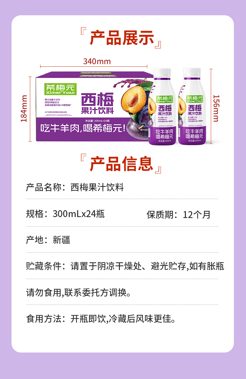 【希梅元】西梅果汁饮料 开盖即饮 清畅升级 膳食纤维