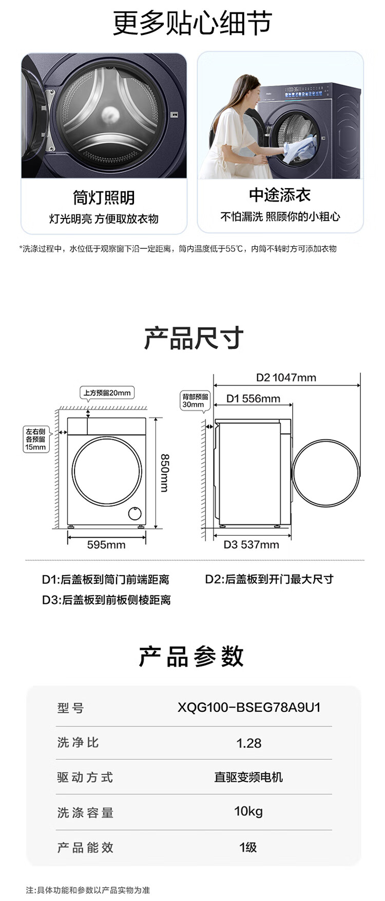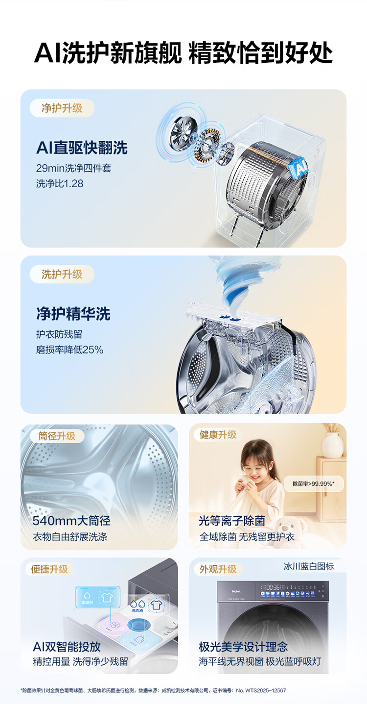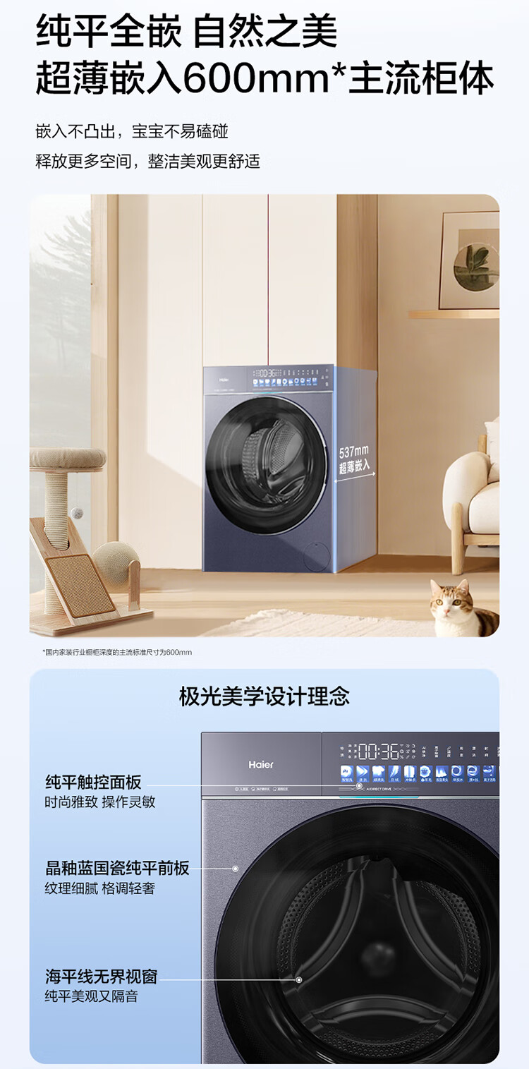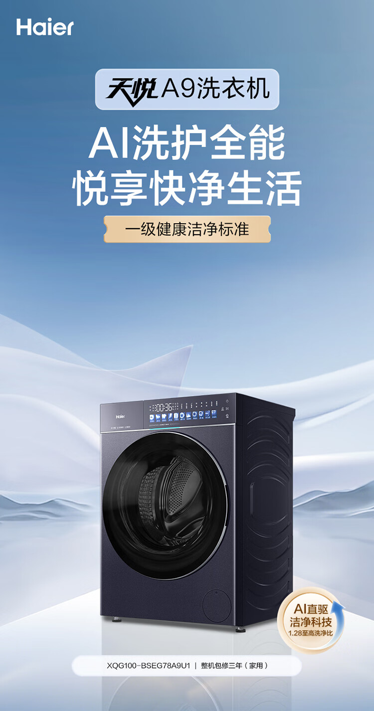海尔(Haier)天悦A9丨滚筒洗衣机全自动10KG 25年新品丨直驱+双智投精华洗+537超薄 商场同款XQG100-BSEG78A9U1