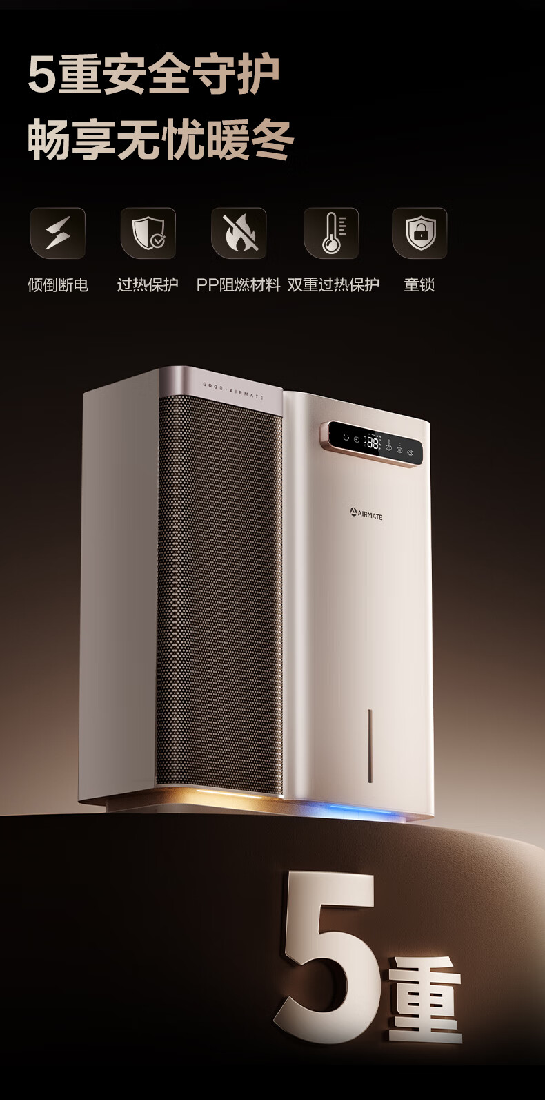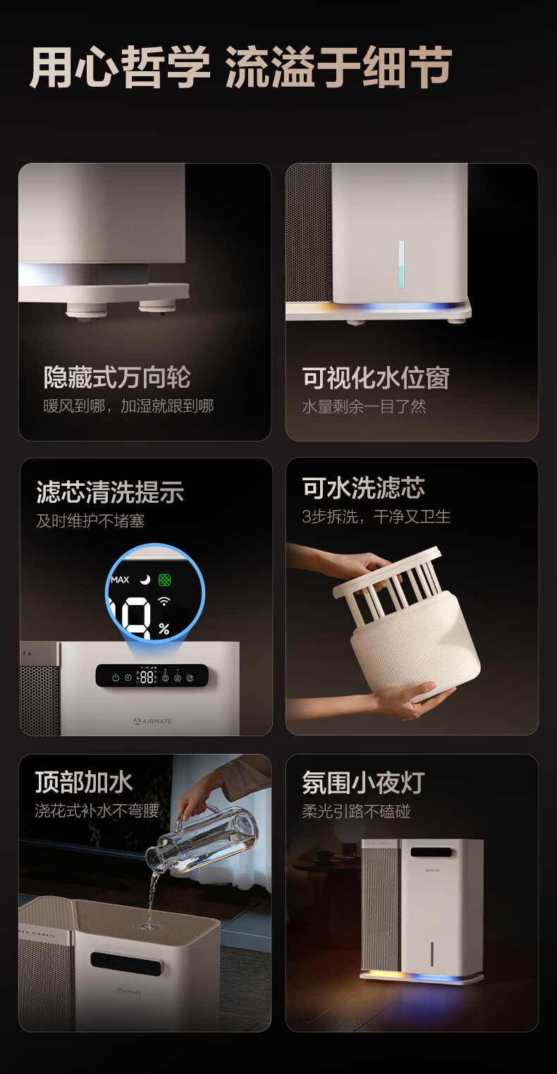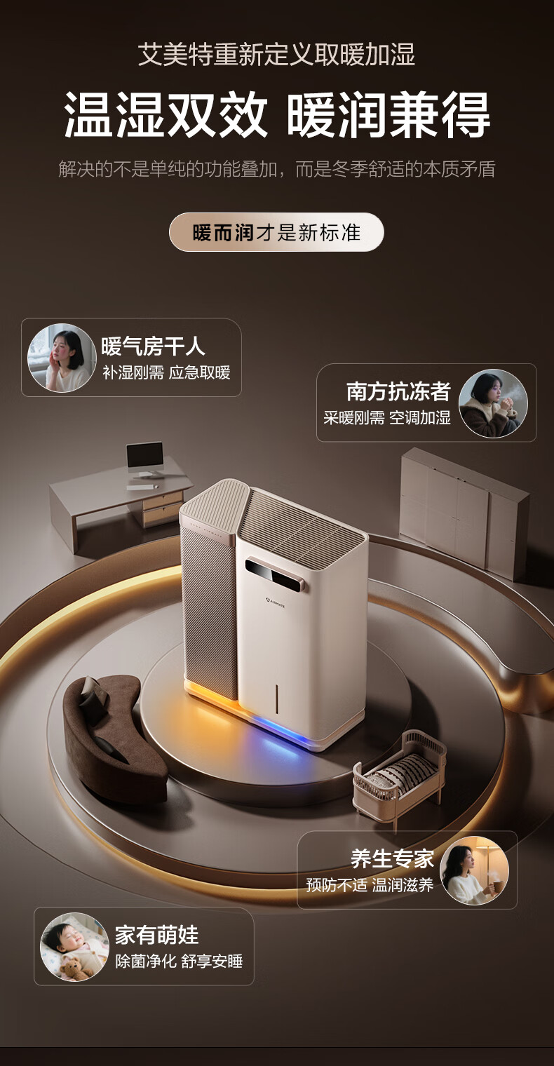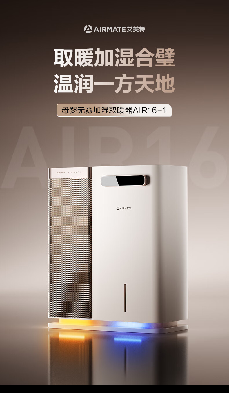 艾美特(AIRMATE)【温润无雾】取暖器无雾加湿器母婴级空气净化电暖气片暖风机家用卧室小太阳大面积电暖器 AIR16-1