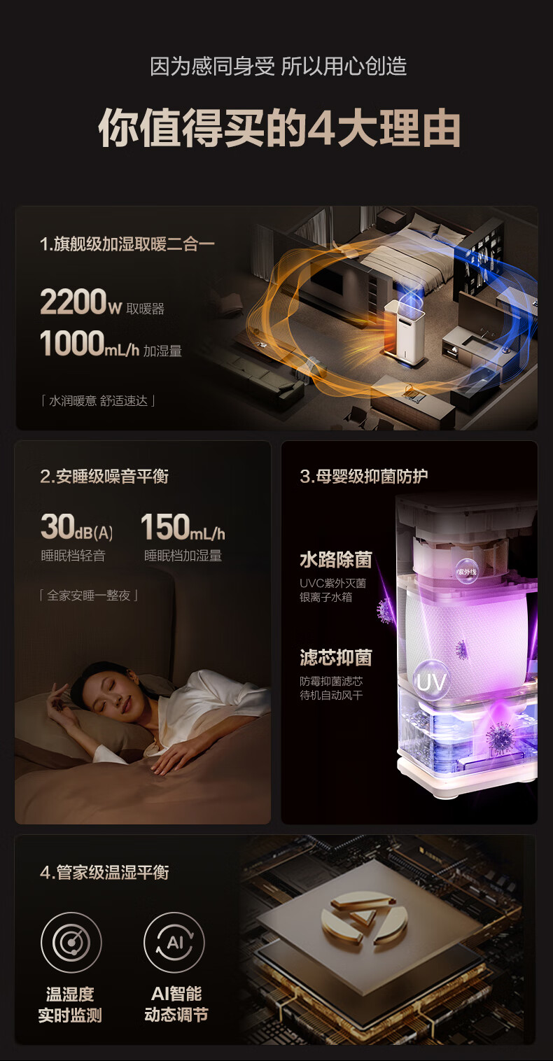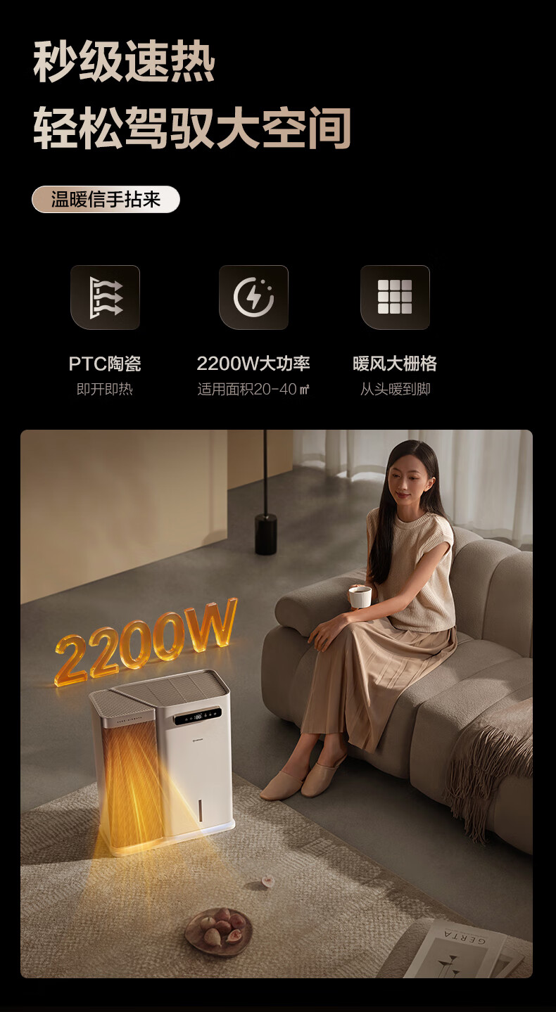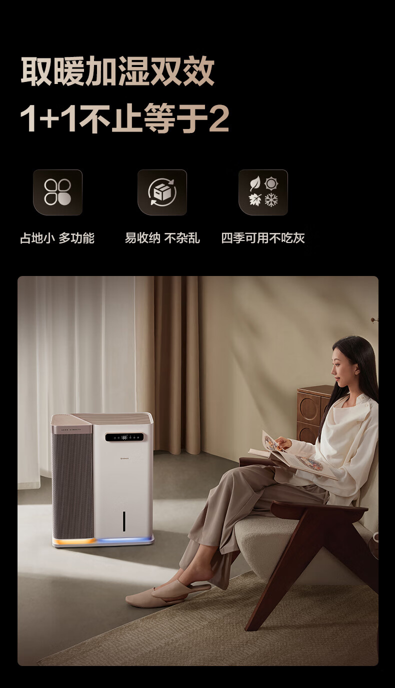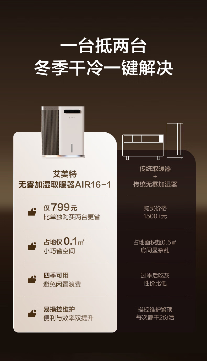 艾美特(AIRMATE)【温润无雾】取暖器无雾加湿器母婴级空气净化电暖气片暖风机家用卧室小太阳大面积电暖器 AIR16-1