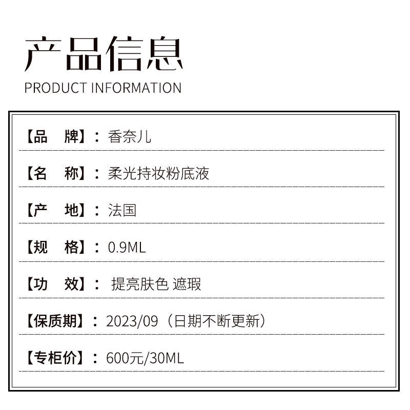 【爆款超低价预售 急单慎拍】香奈儿柔光持妆粉底液/米色时尚粉底液BR12号 0.9ml 金砖粉底