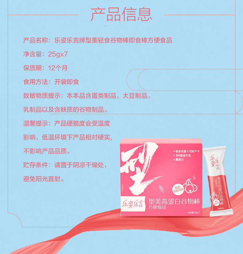 【预售 急单慎拍】无限极乐姿乐言牌型美高蛋白谷物棒方便食品(微甜蔓越莓味)25g*7 原价95元