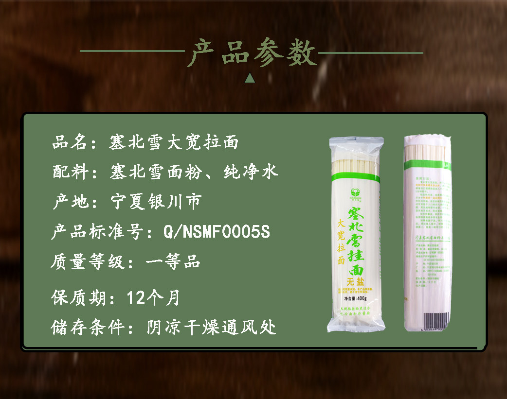 塞北雪无盐挂面大宽拉面6mm面条400g*4包无碘无钠挂面炸酱面拌面