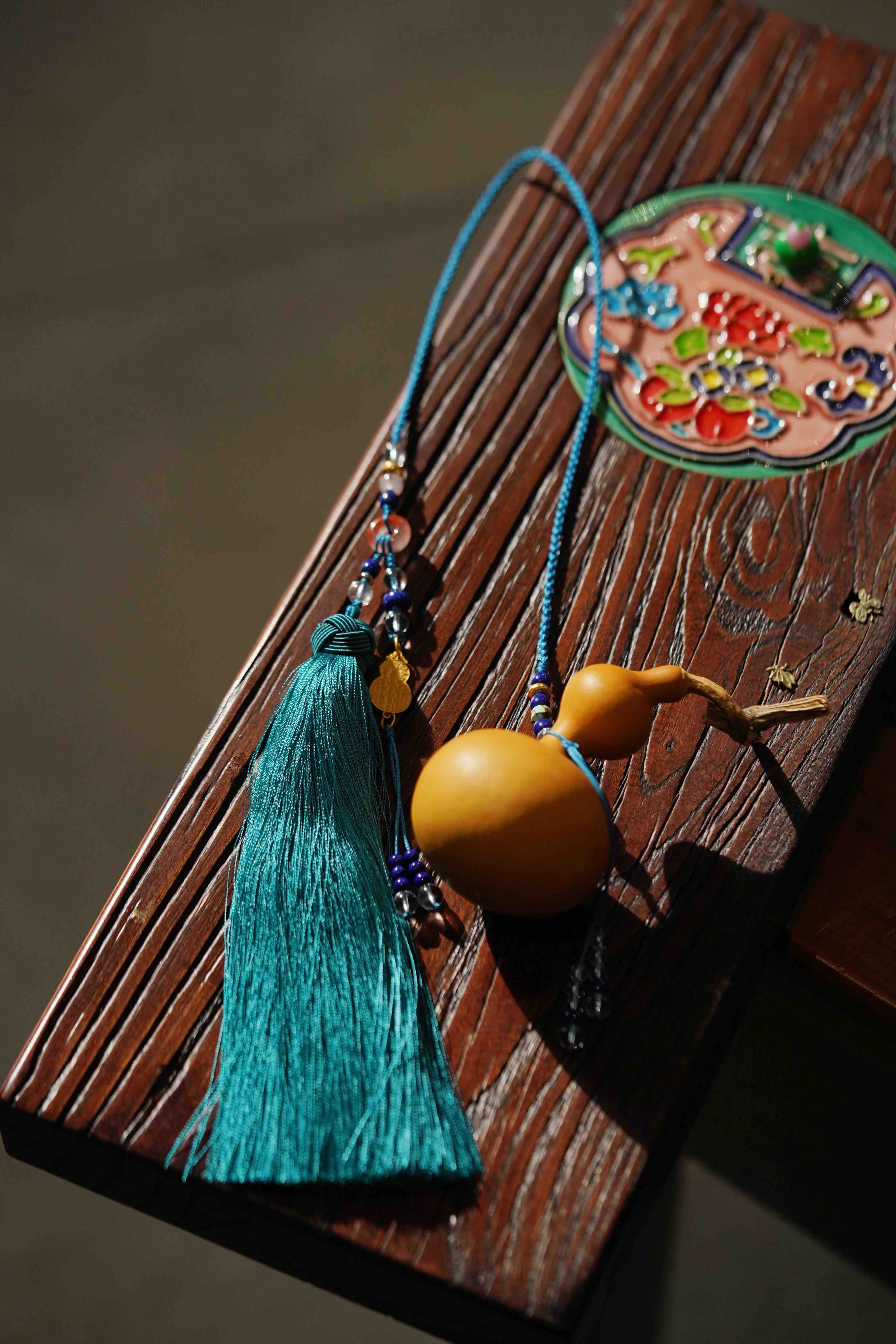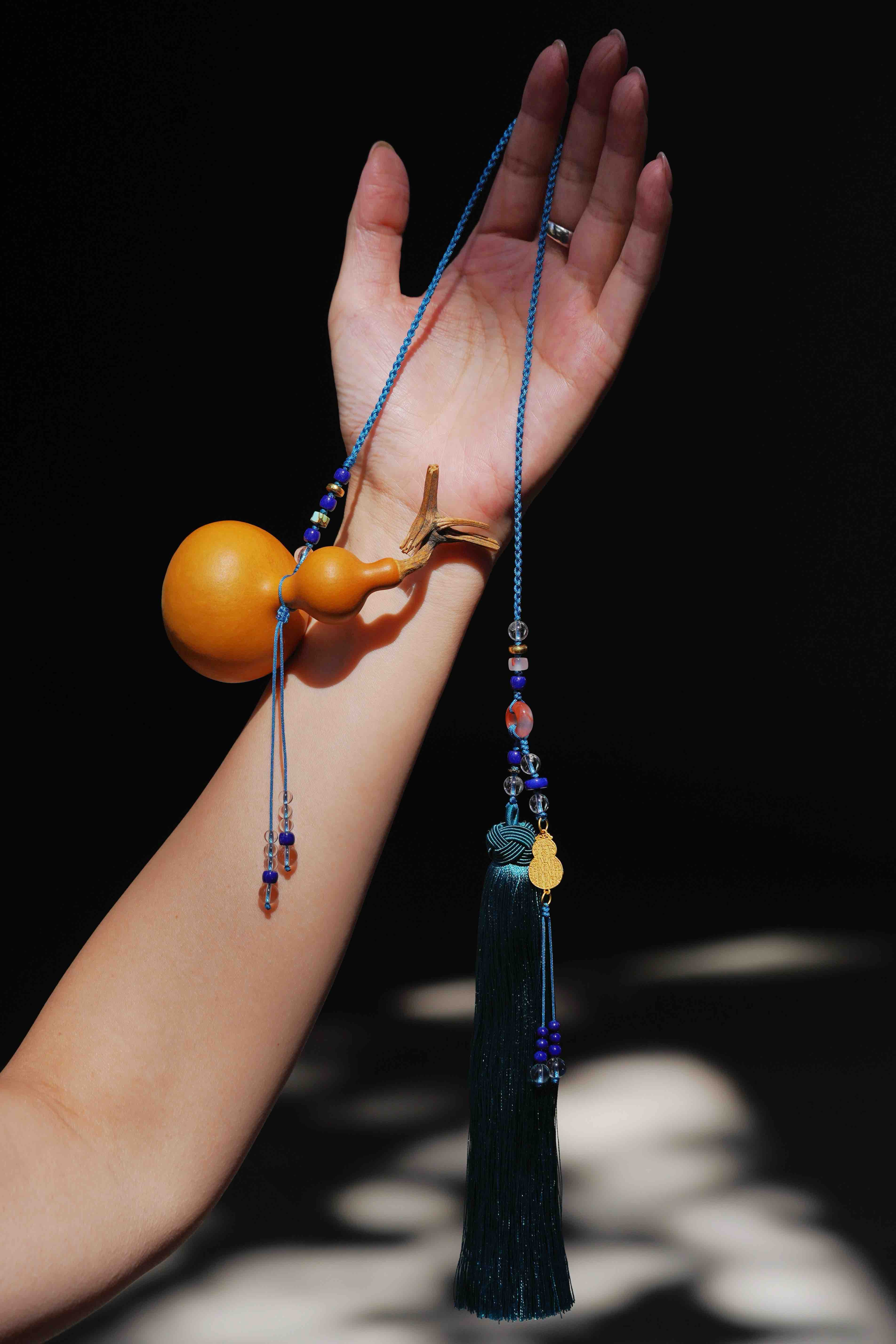 一枚手工编织的葫芦。