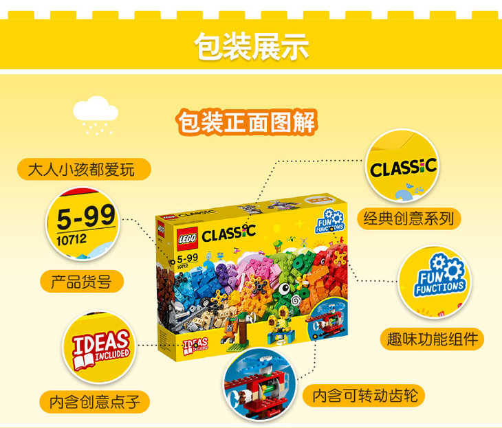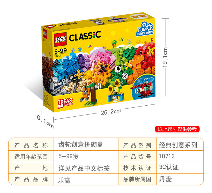 乐高 LEGO 齿轮创意拼砌盒 LEGC10712 Classic 适用年龄3Y-6Y 拼插积木益智玩具
