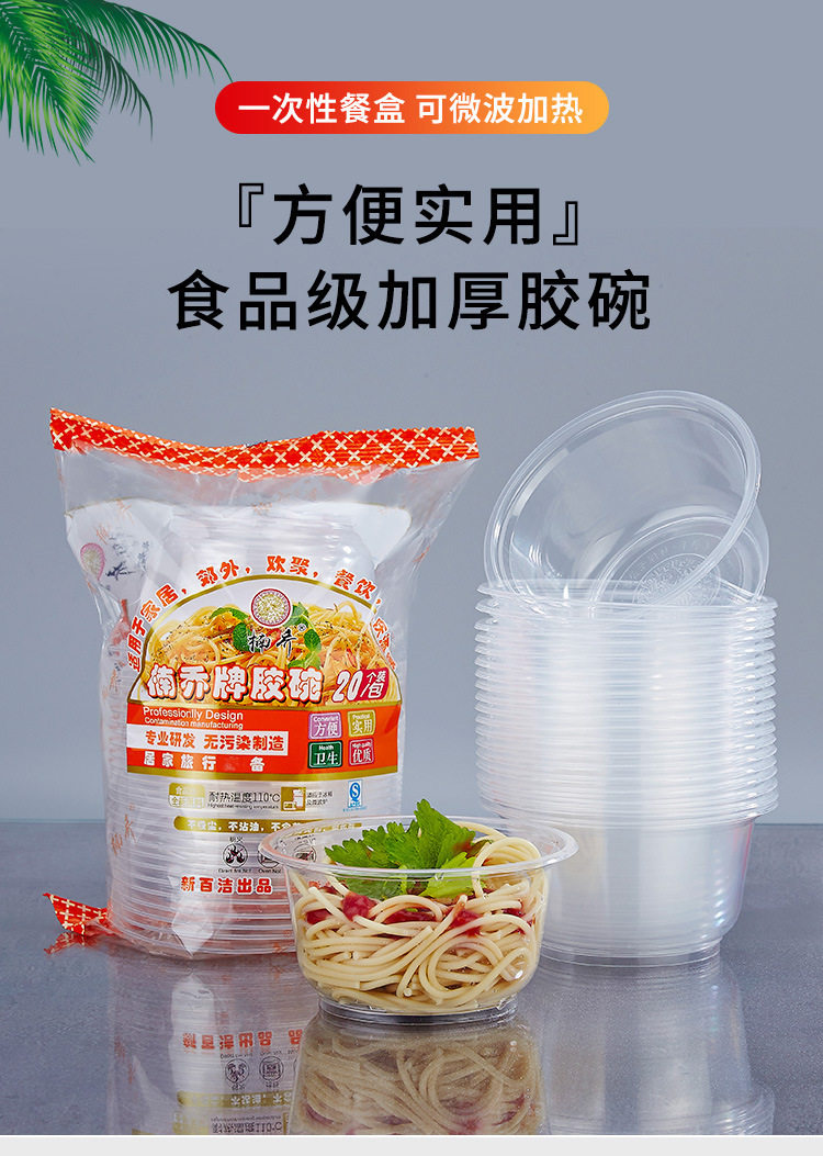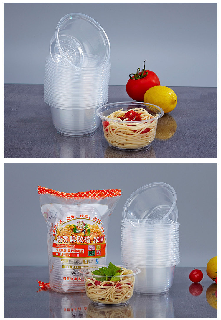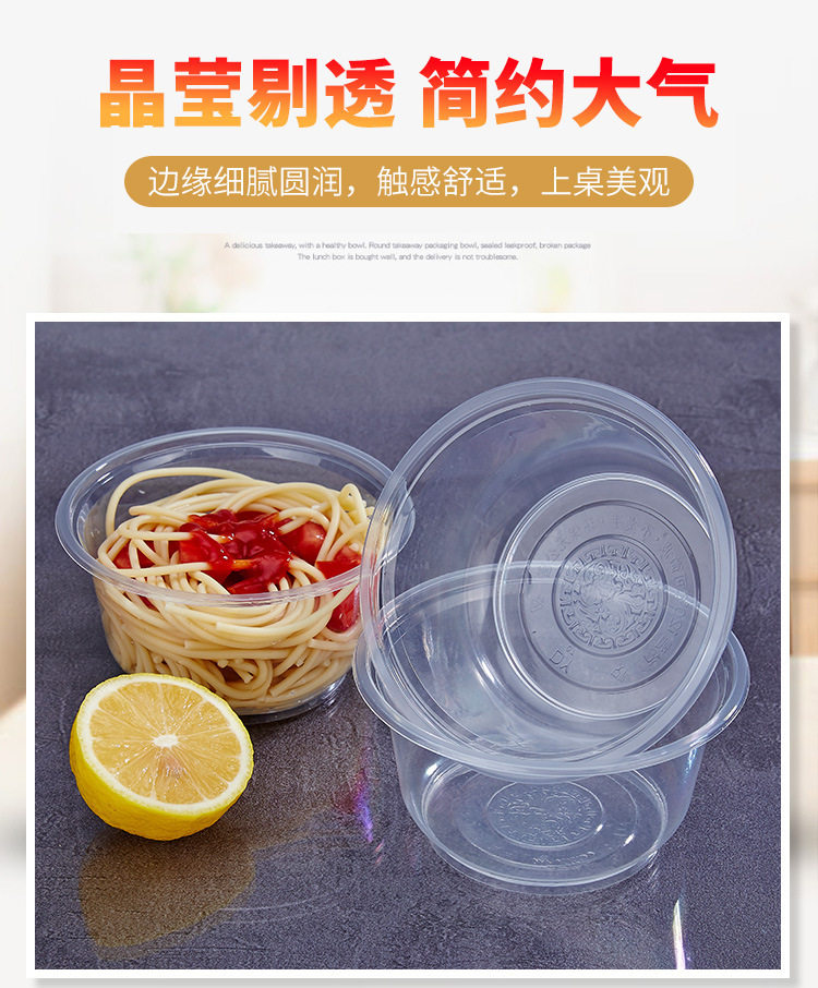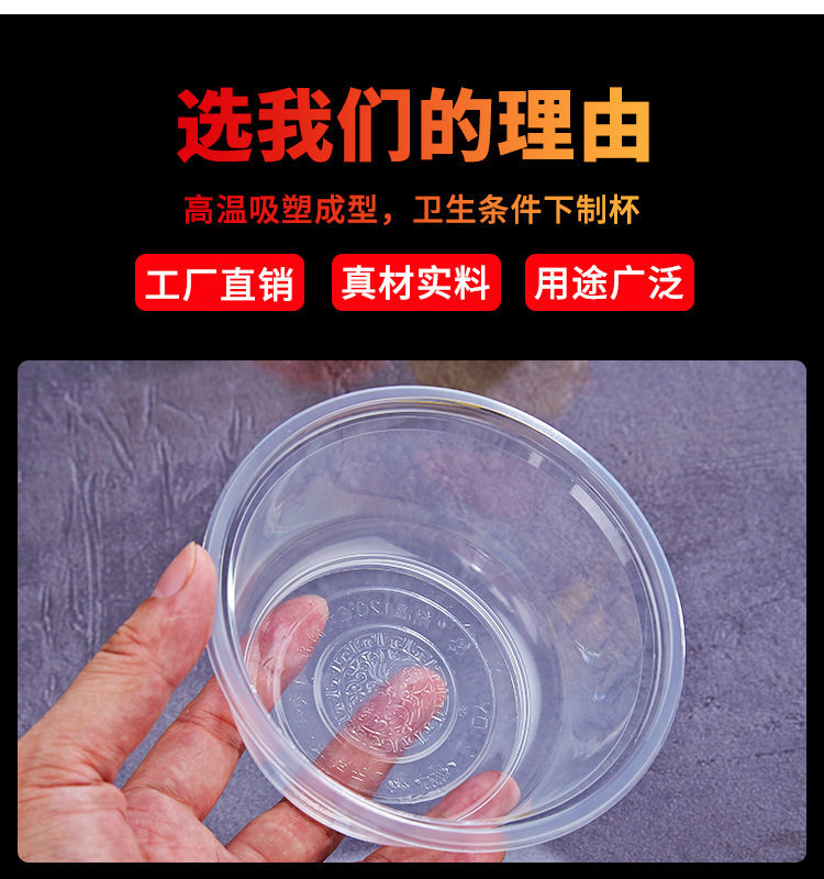 商用凉皮冰粉家用盒外卖碗一次性打包饭盒快餐加厚圆形酒席透明
