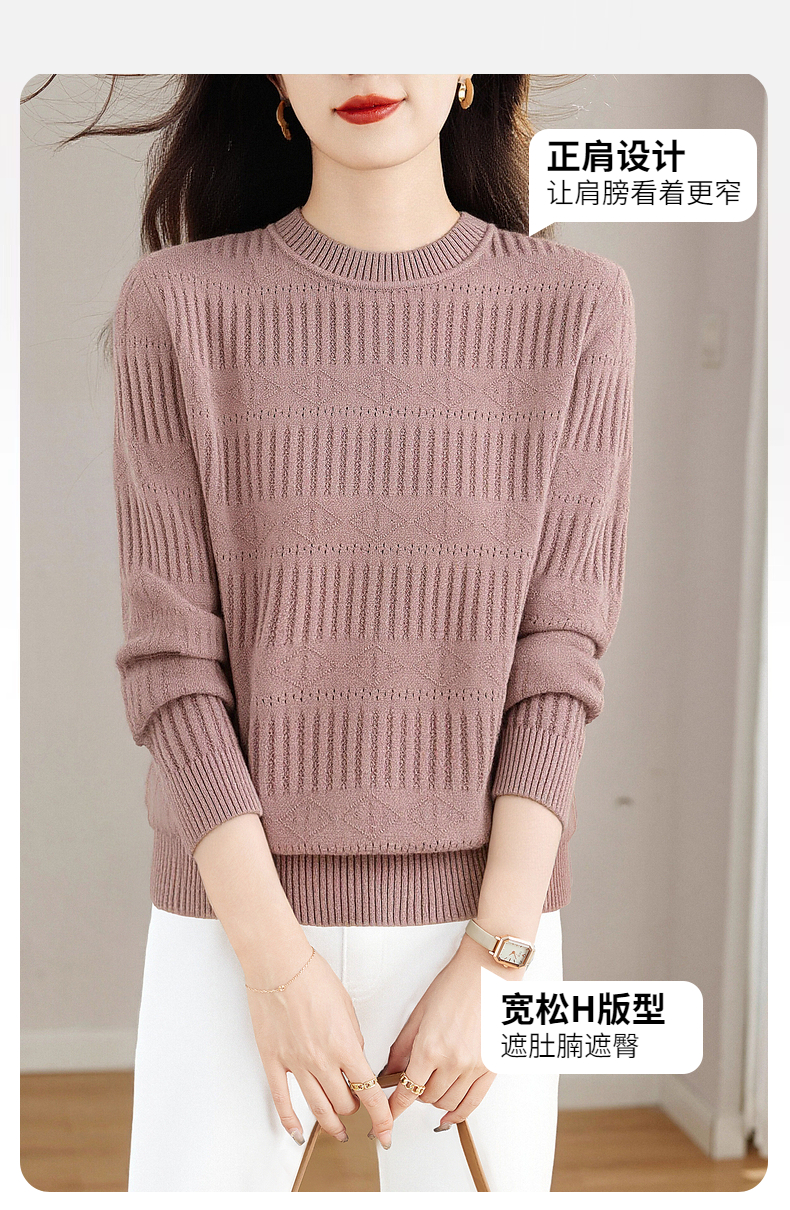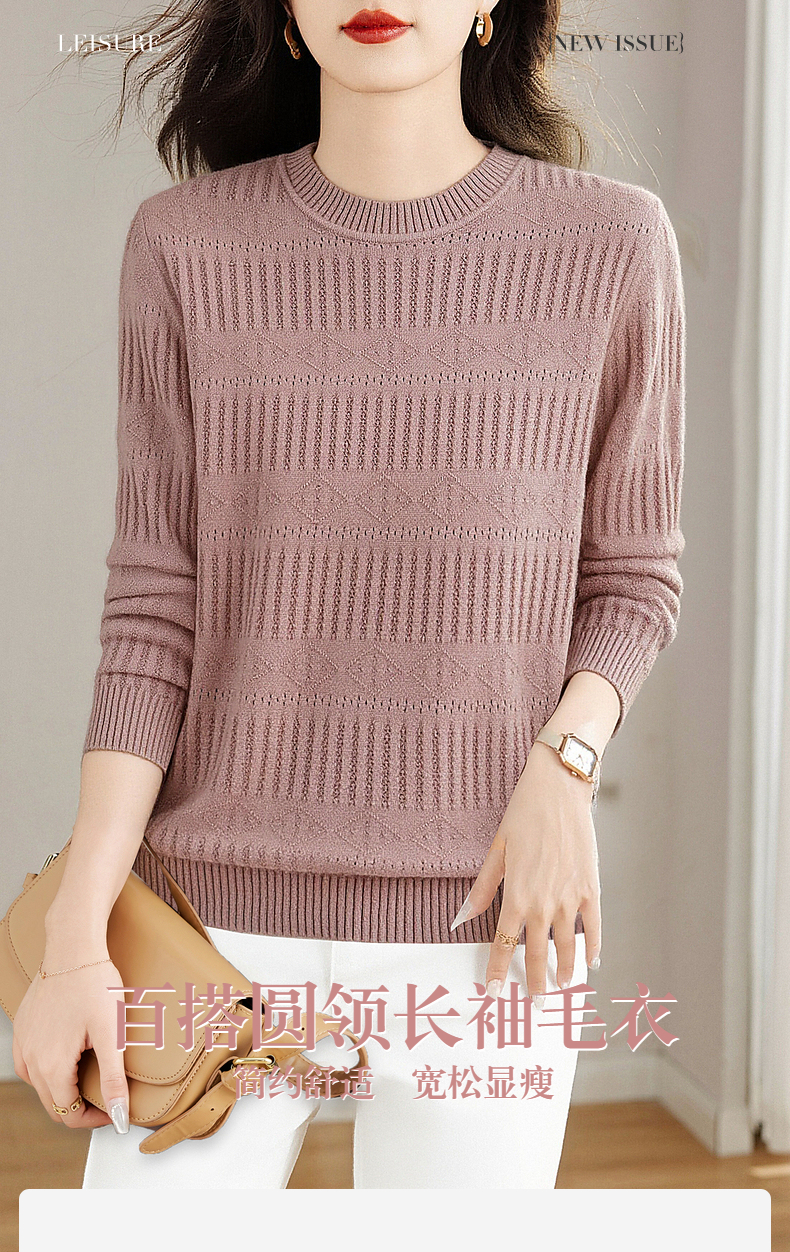 大码毛衣女秋冬季圆领打底衫宽松显瘦套头针织衫女士长袖上衣洋气